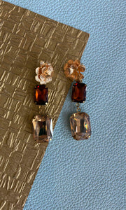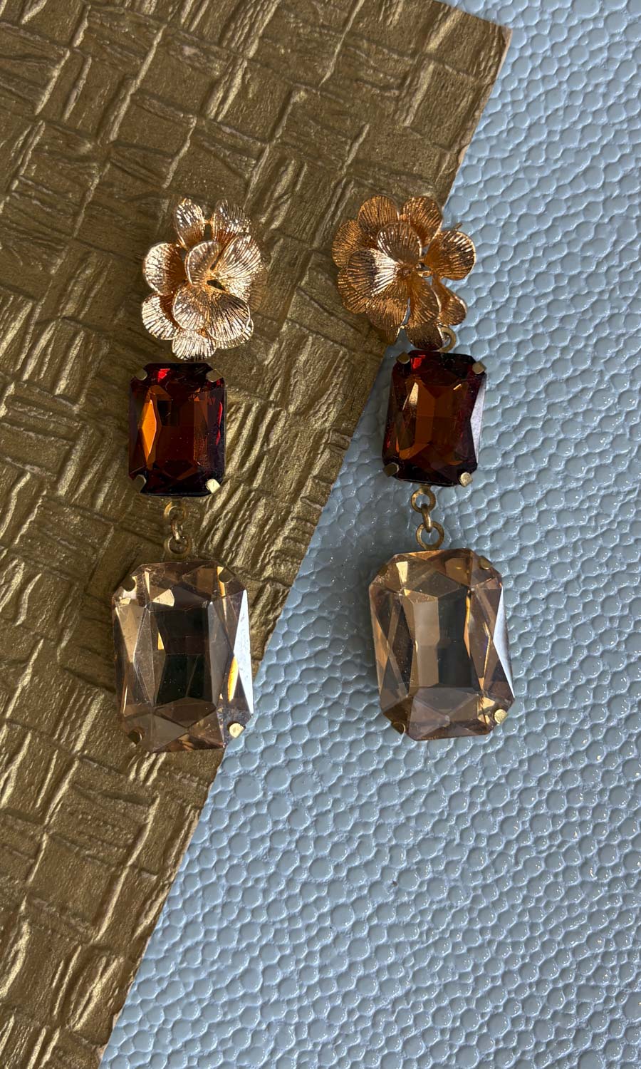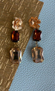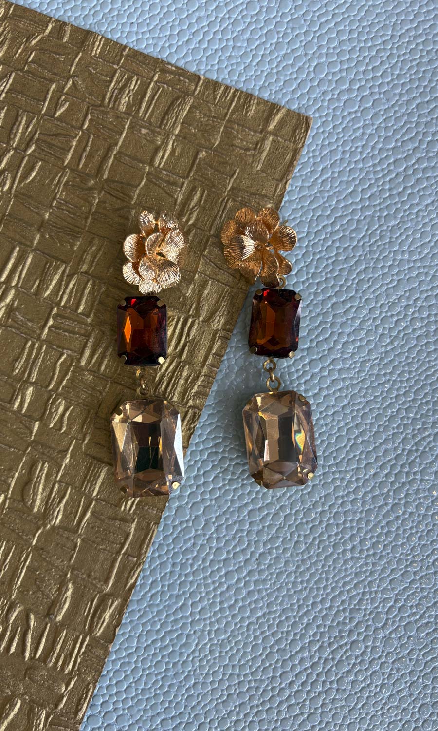 Fleur 2 Drop Earrings - Dark Amber / Champagne