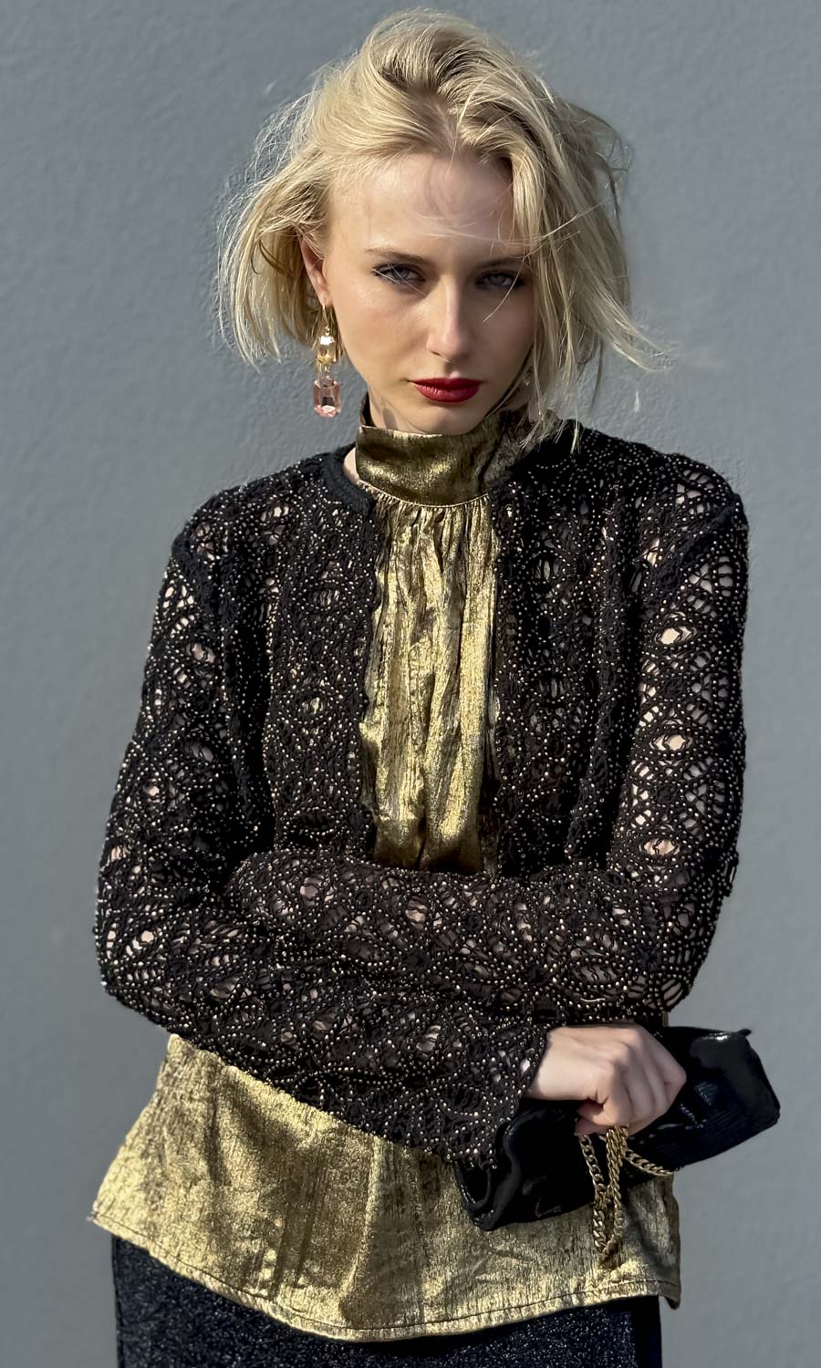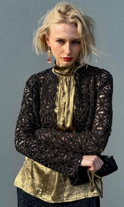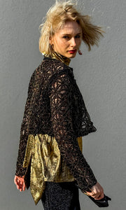 100% heavy crochet cotton jacket merge with black metallic micro bead