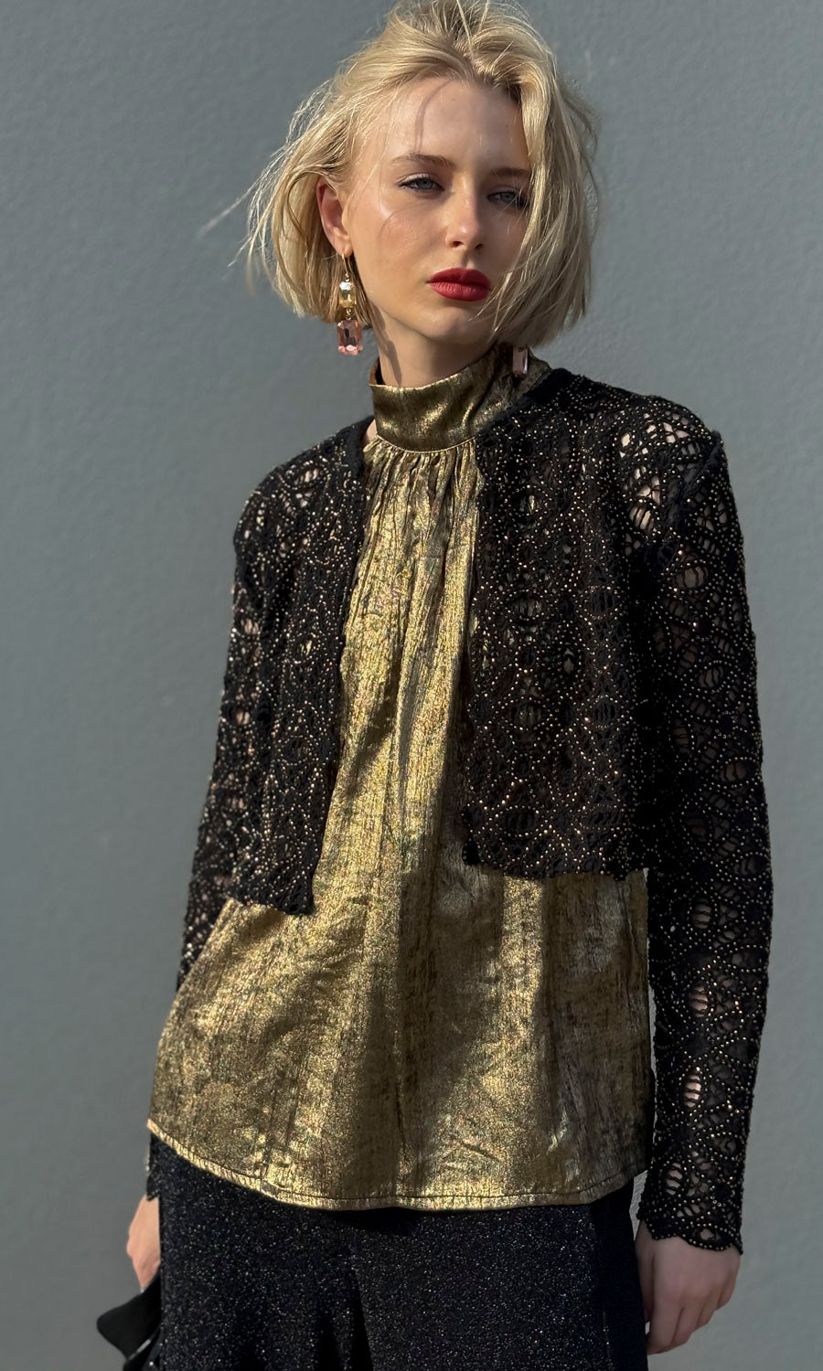 - Evening beaded crochet crop jacket by Sabina Musayev.