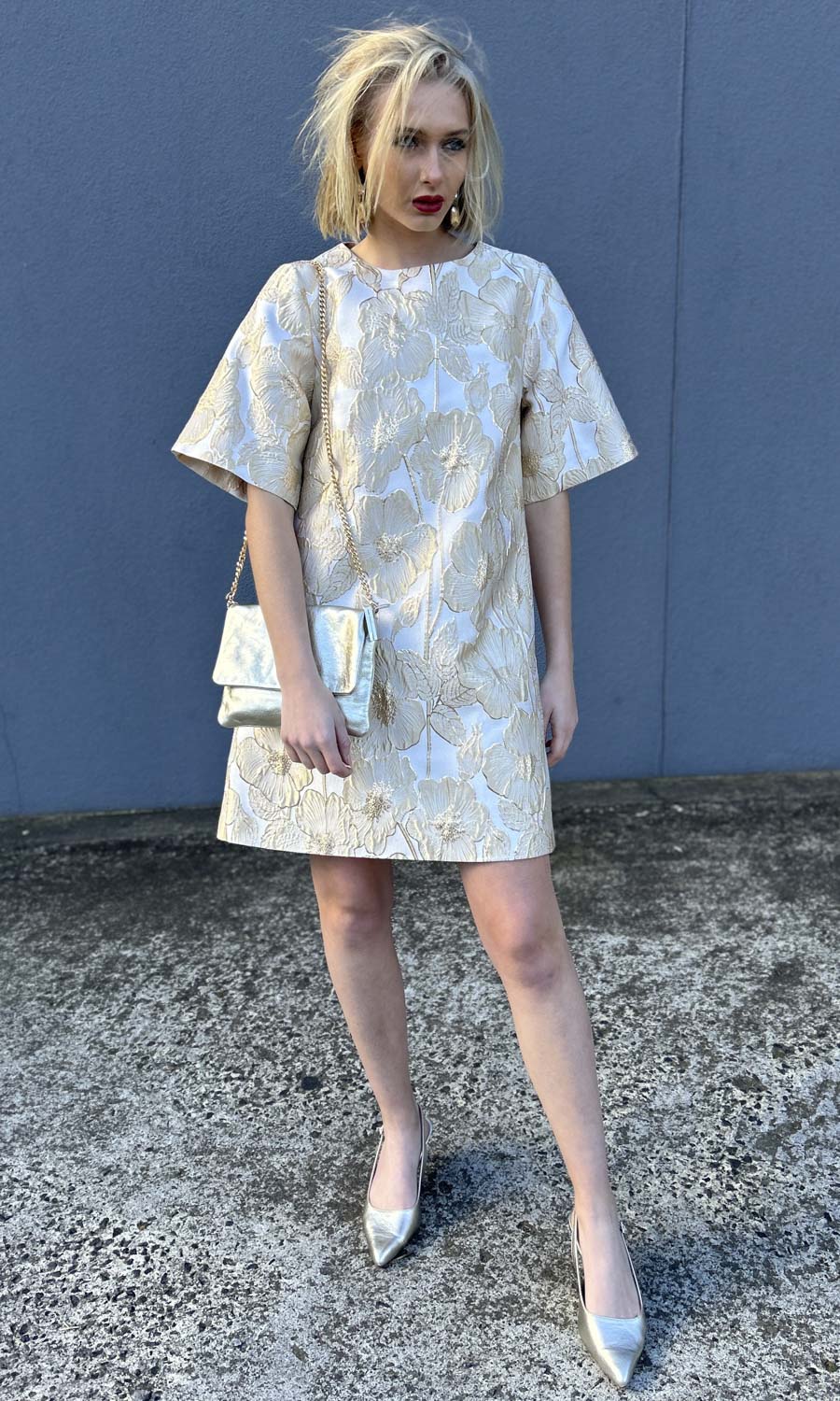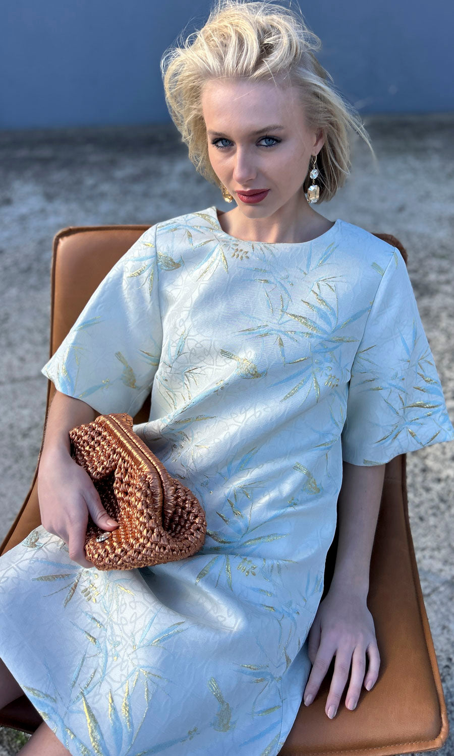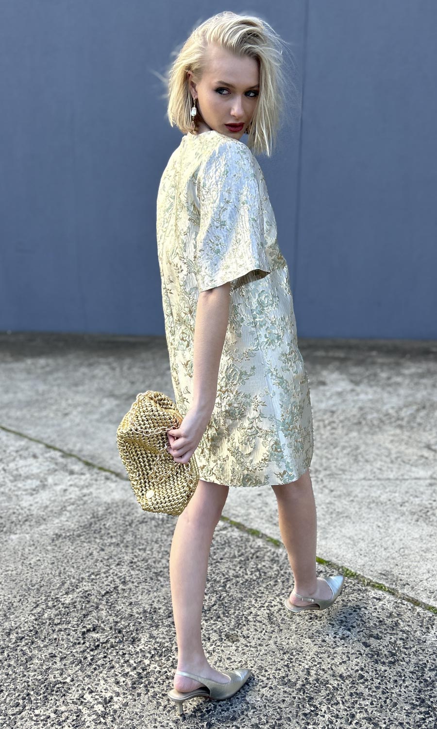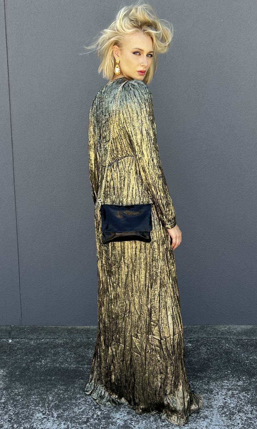 When you wear a draped dress, keep your shoes simple so your dress can be the center of attention.