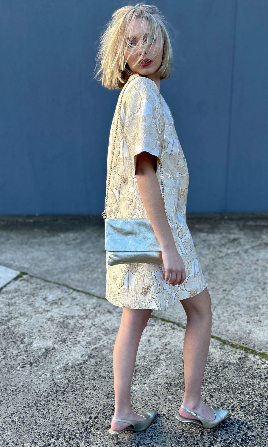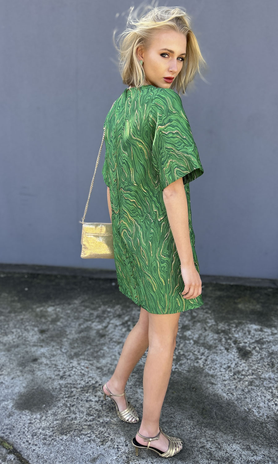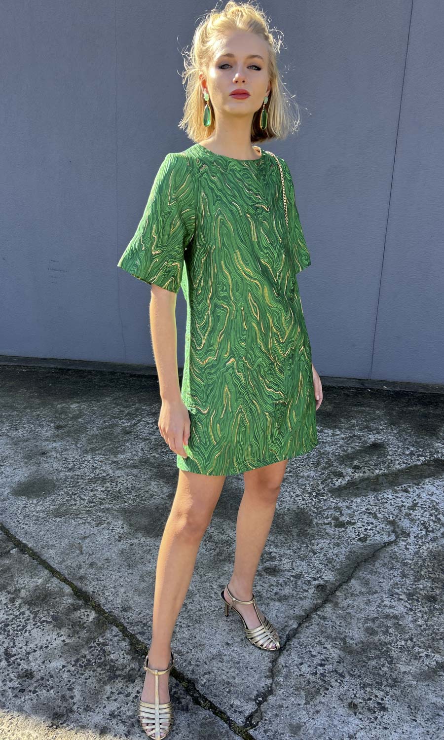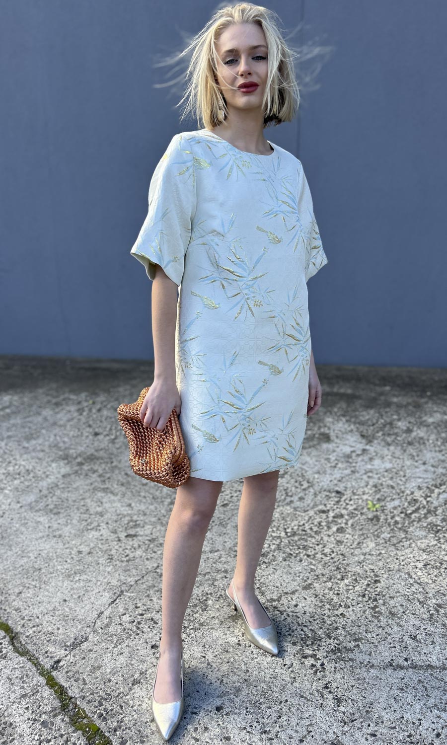 When you wear a draped dress, keep your shoes simple so your dress can be the center of attention.