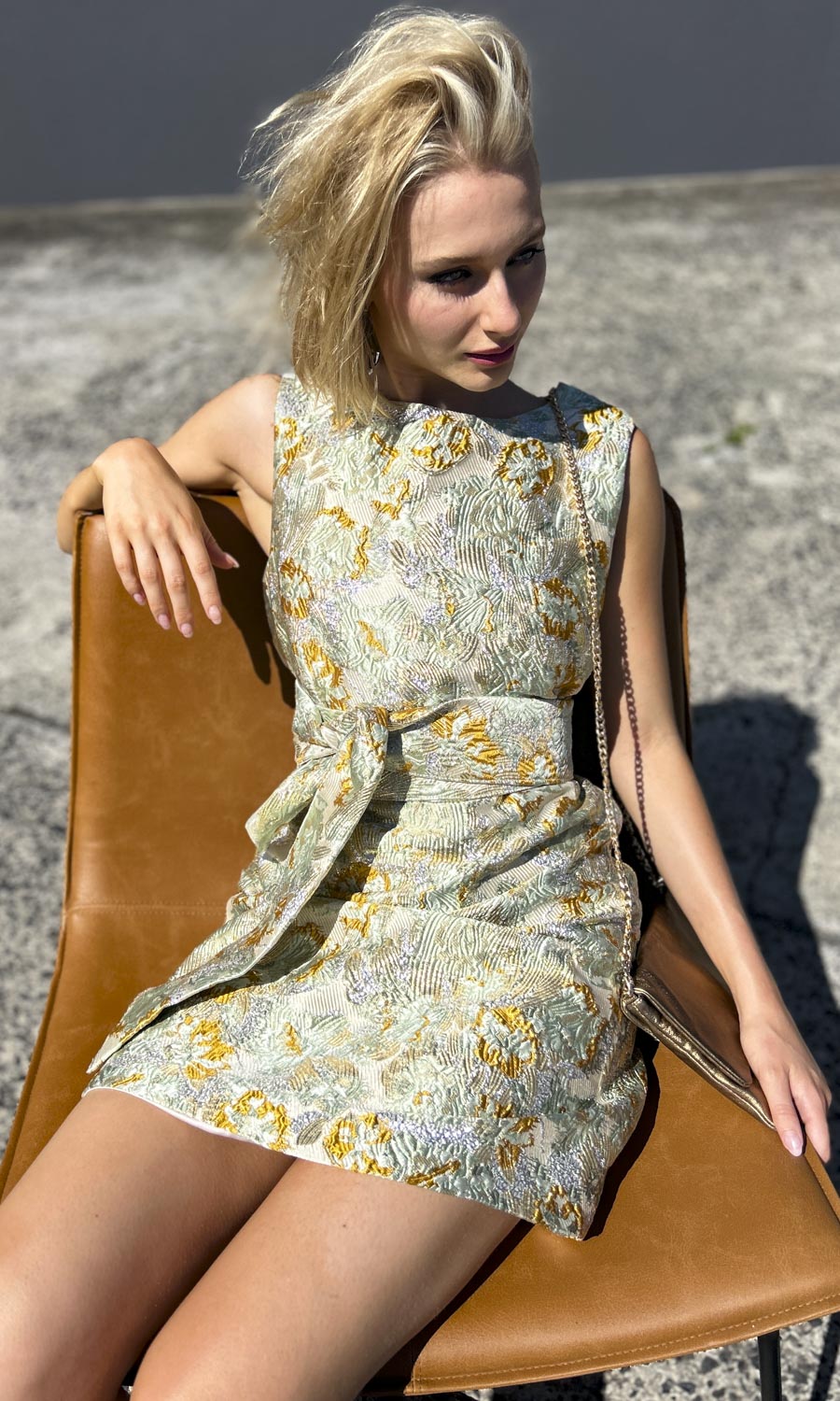 Structured dress with self tie double belt