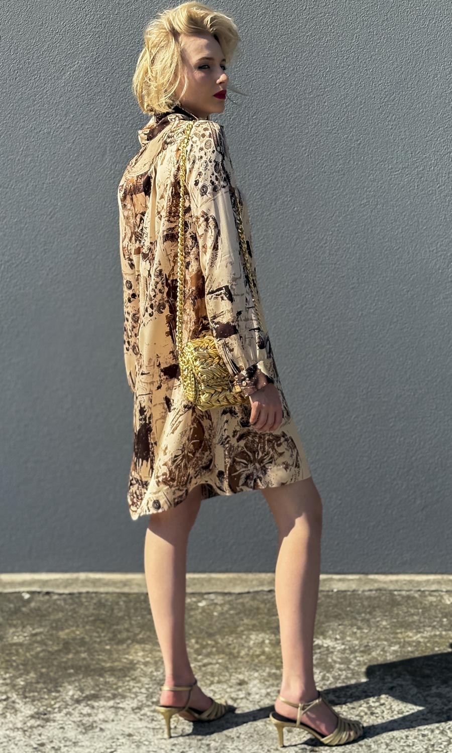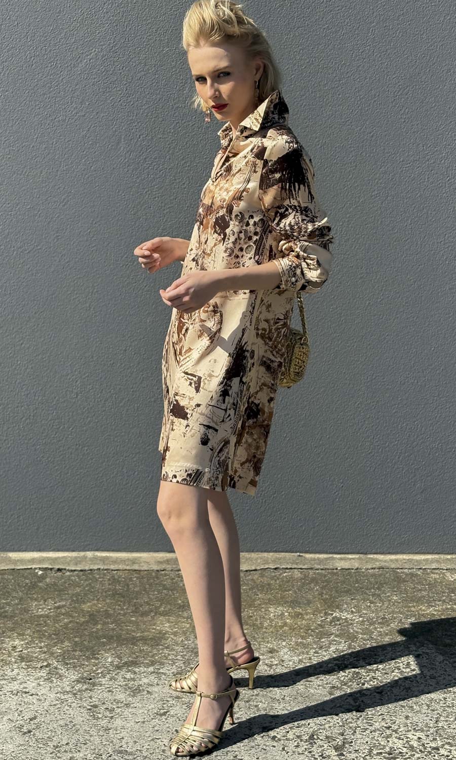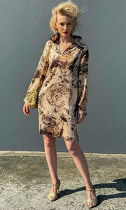 Unique Vintage print in pale gold choc and caramel patterns.
