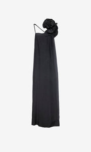 This long trapeze-shaped dress stands out through the noble look of its cotton and silk blend, in a deep black.