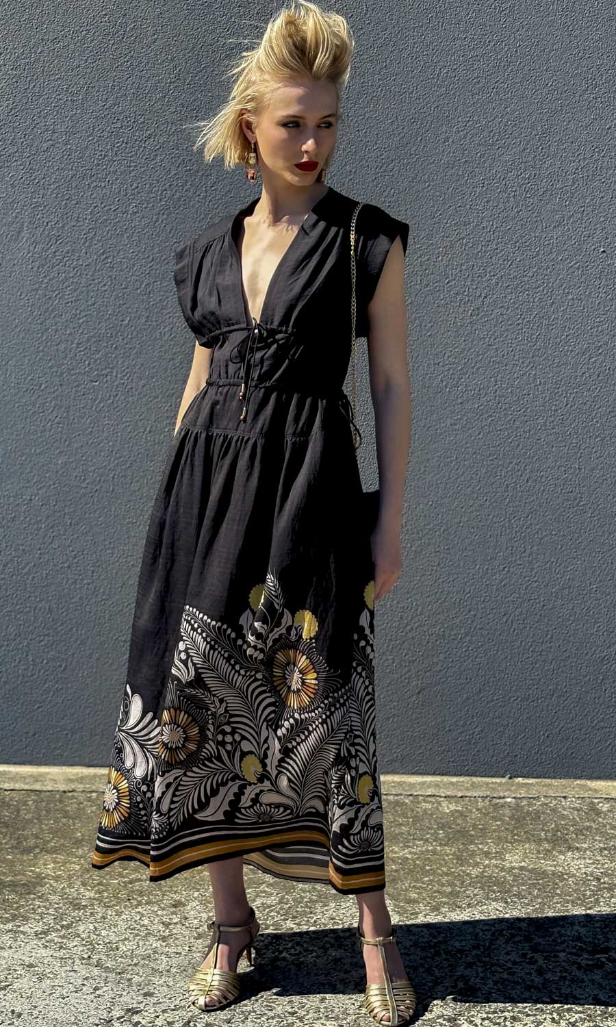 - Casual sunflower print midi sleeveless dress by Sabina Musayev.