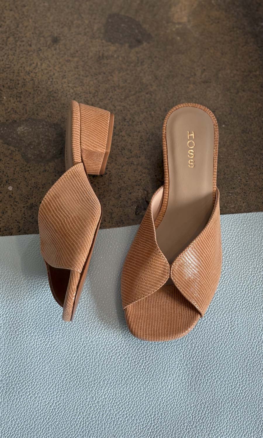 The Hoss California Slides in Glomesh leather Honey are a stylish and comfortable pair of women's shoes. The shoes feature a slip-on design with a simple and effortless look.