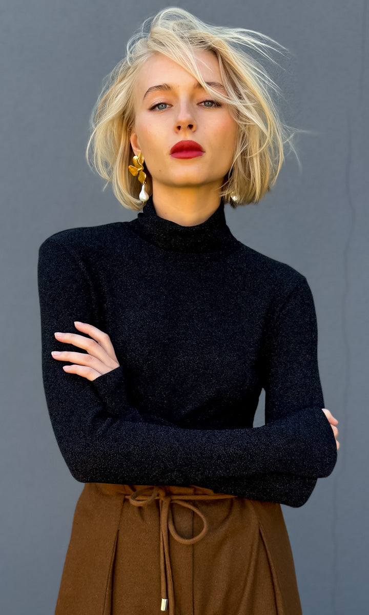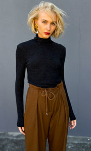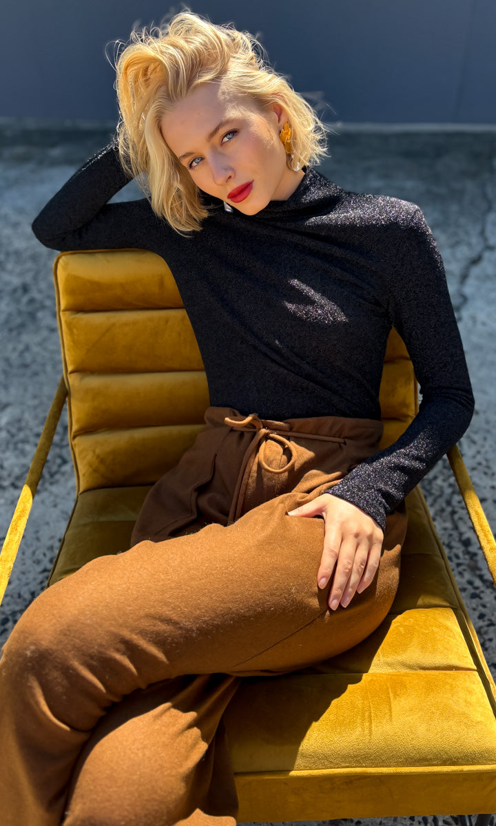 Back soft inner knitted base with soft metallic soft outer micro knit yarn.