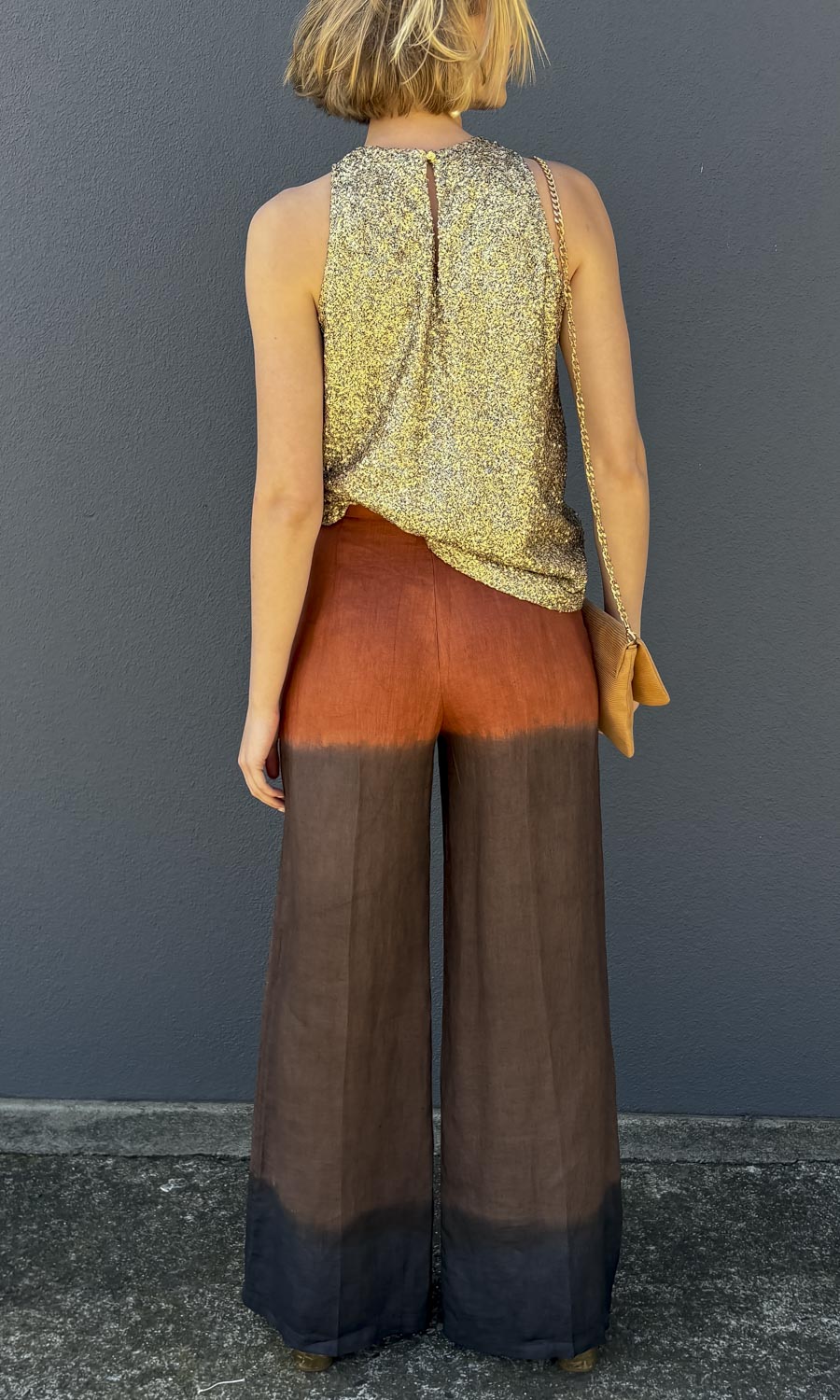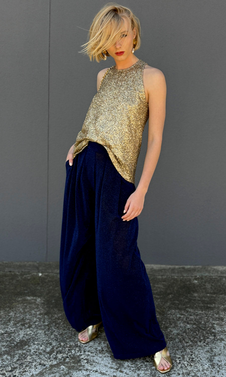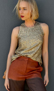 Mesh flat disc sequin Tank - Dark gold