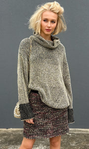 The oversize fit, full sleeves and a large turtleneck give a cool, elegant look.