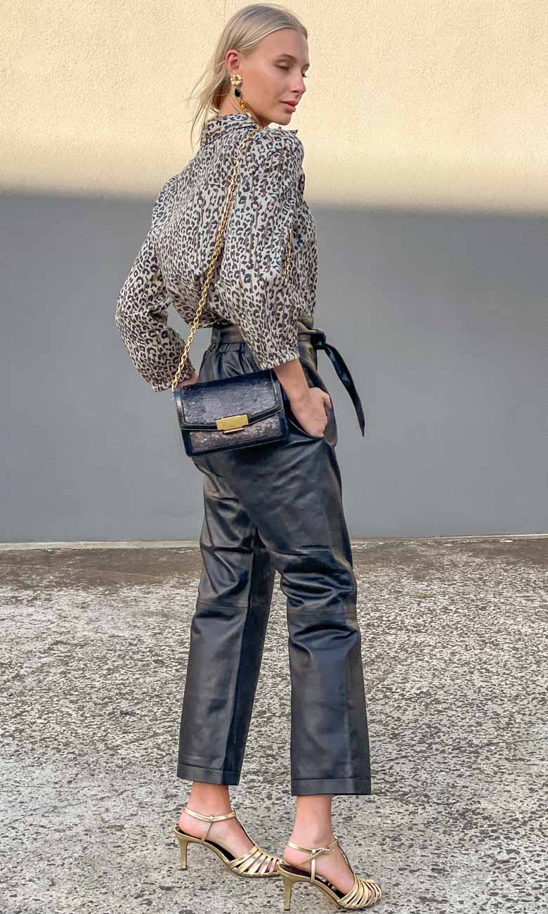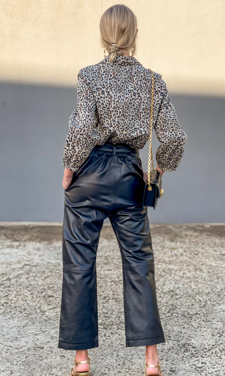 Worn back with Hoss Kez black leather pants.
