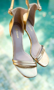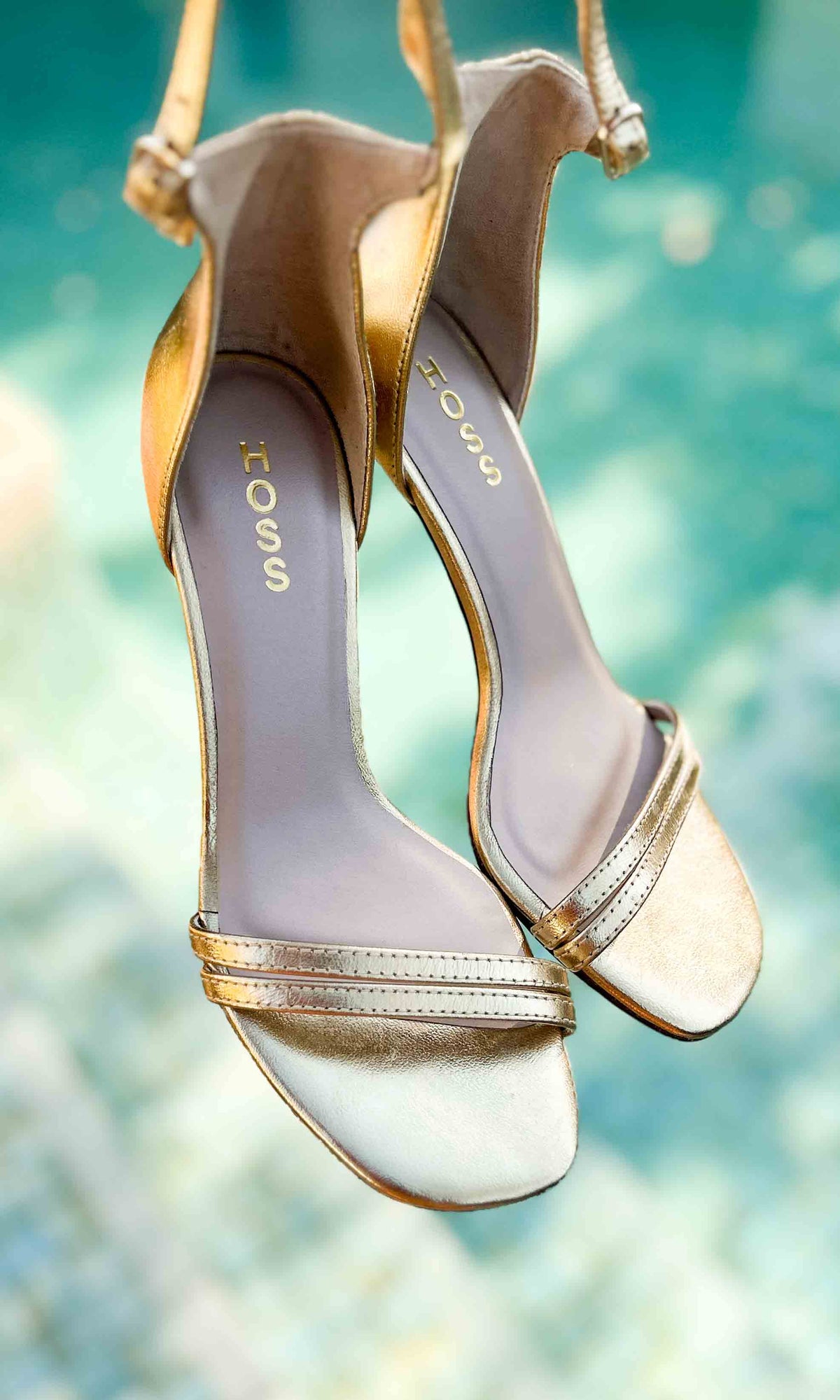 The Hoss Morgan Gold Leather Heels are a sleek and stylish pair of women's shoes. The shoes feature a rounded toe design with a 5cm length heel, providing a chic and sophisticated look and all day / night comfort,. The gold leather adds a touch of glamour, making them perfect for special occasions.