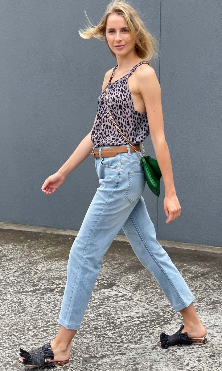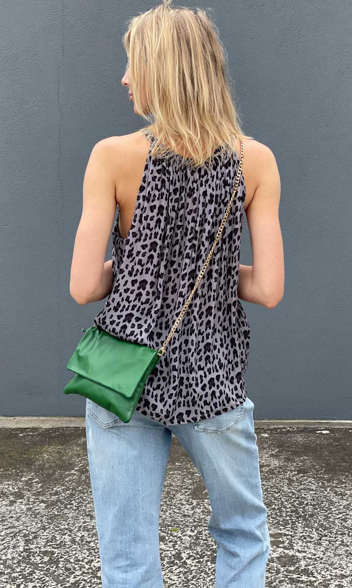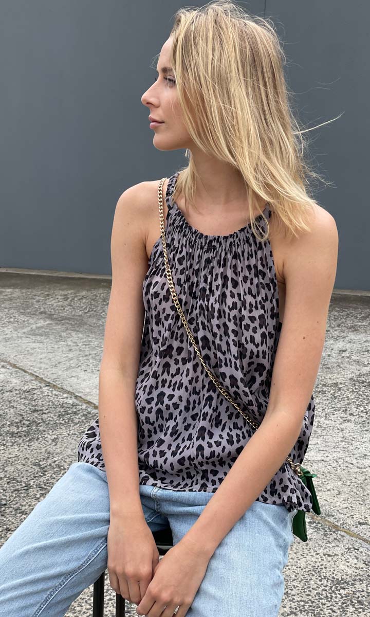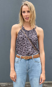 Lovely simple animal print halter . Viscose / cotton.