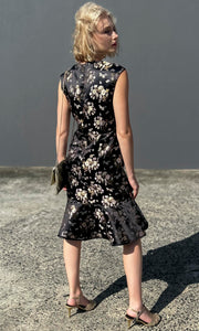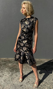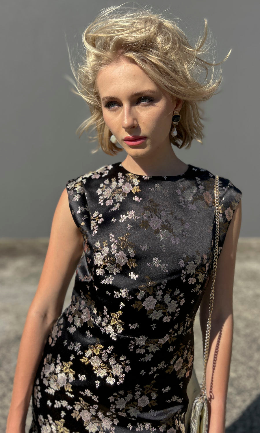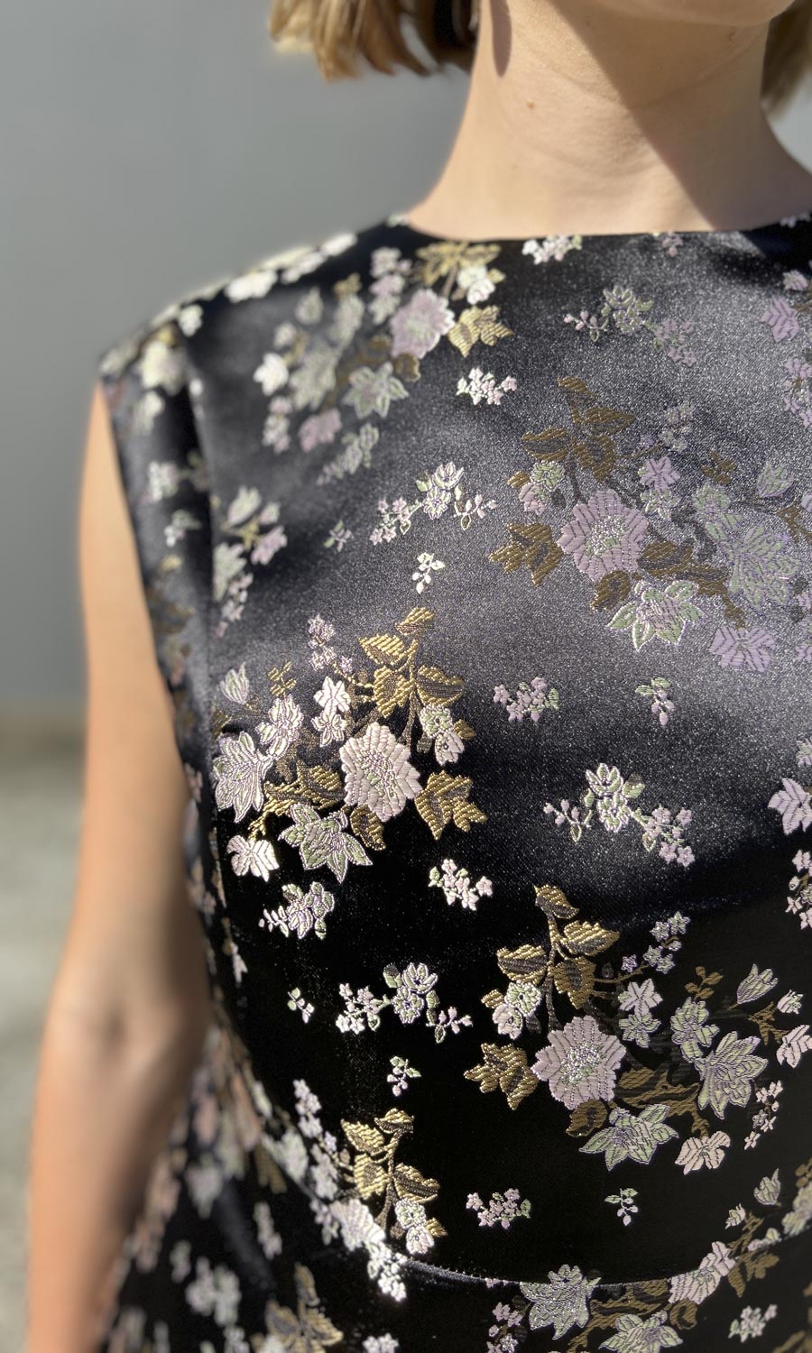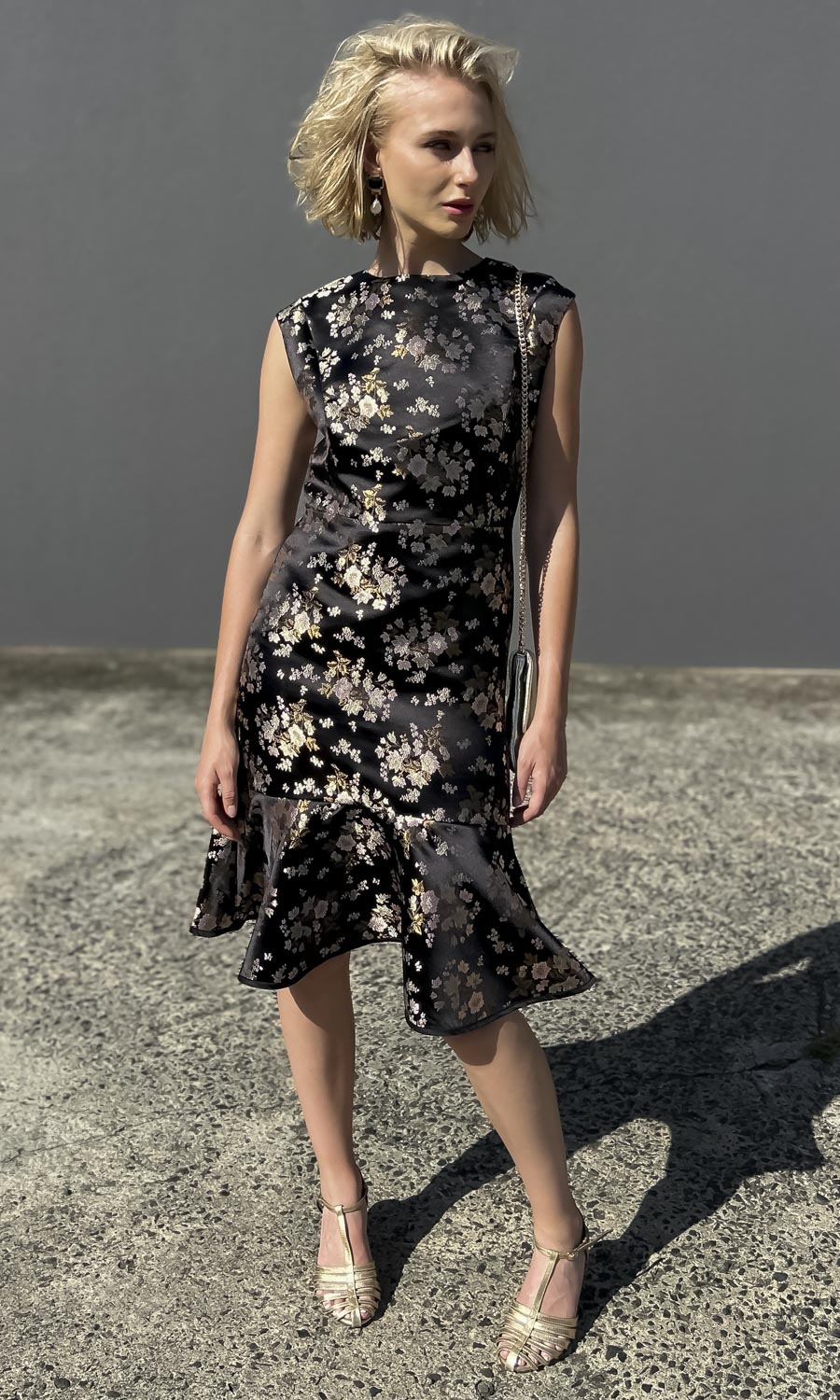 A fitted bodice with capped sleeve, fully lined with black invisible back centre zip.
