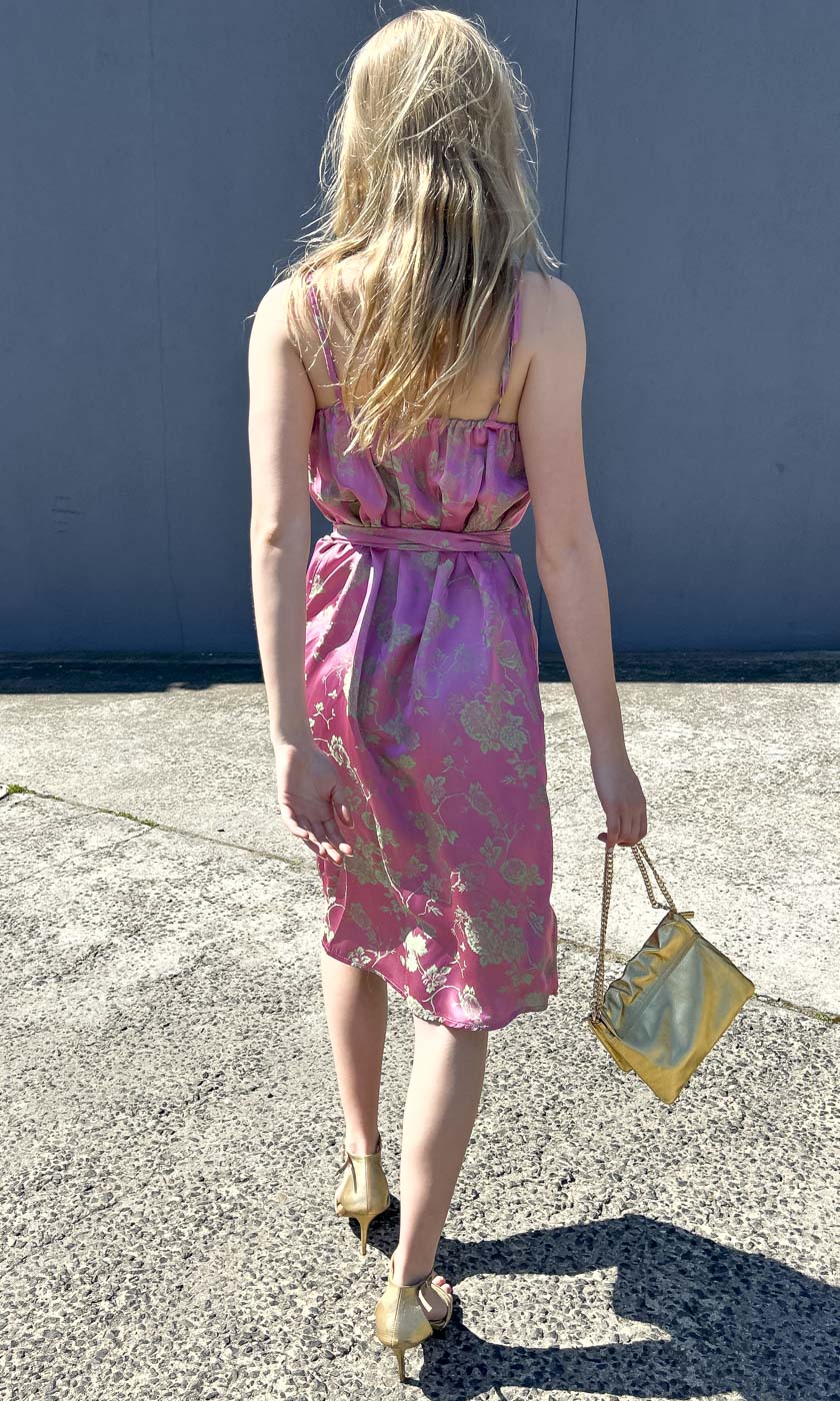 easy fit through body with self tie belt.