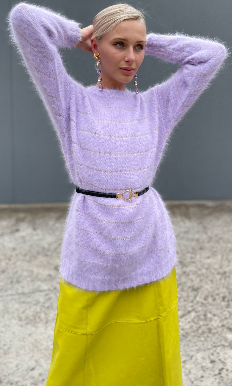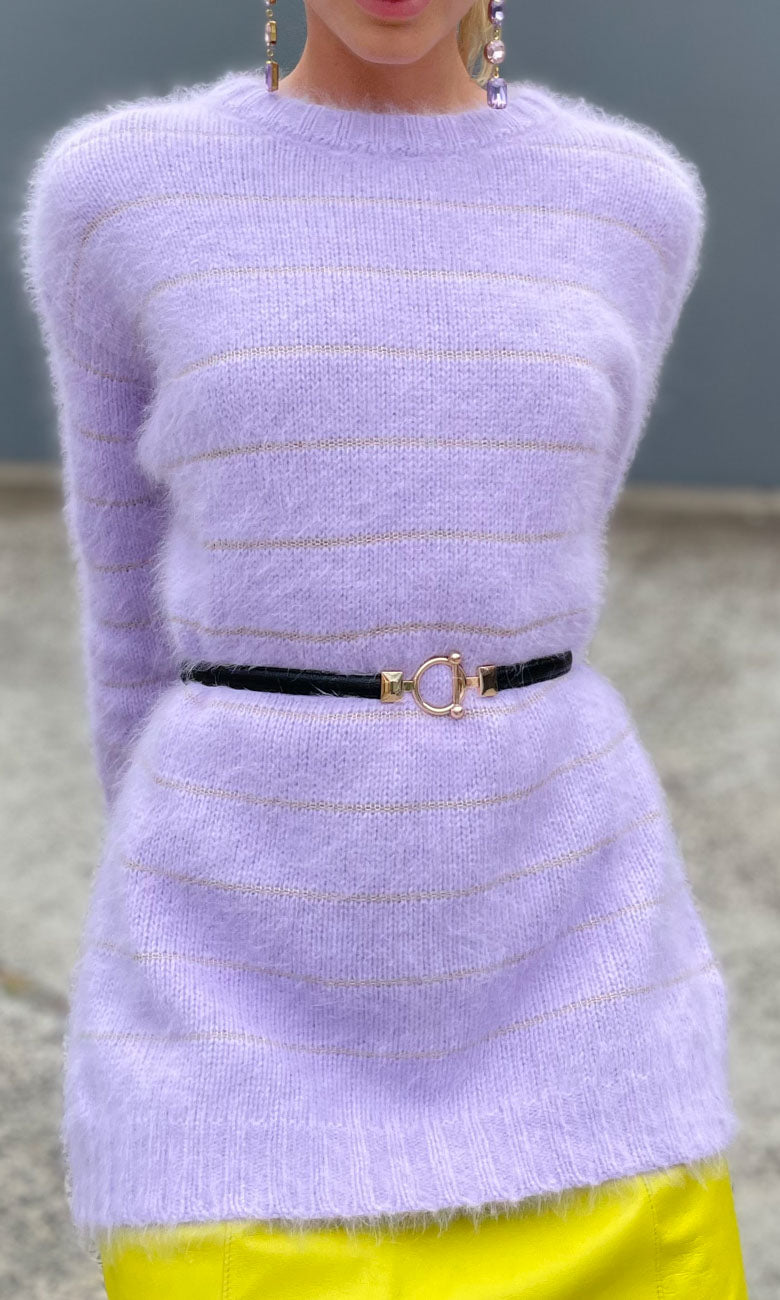 Gorgeous slim leather belt with gold clasp buckle at front.