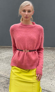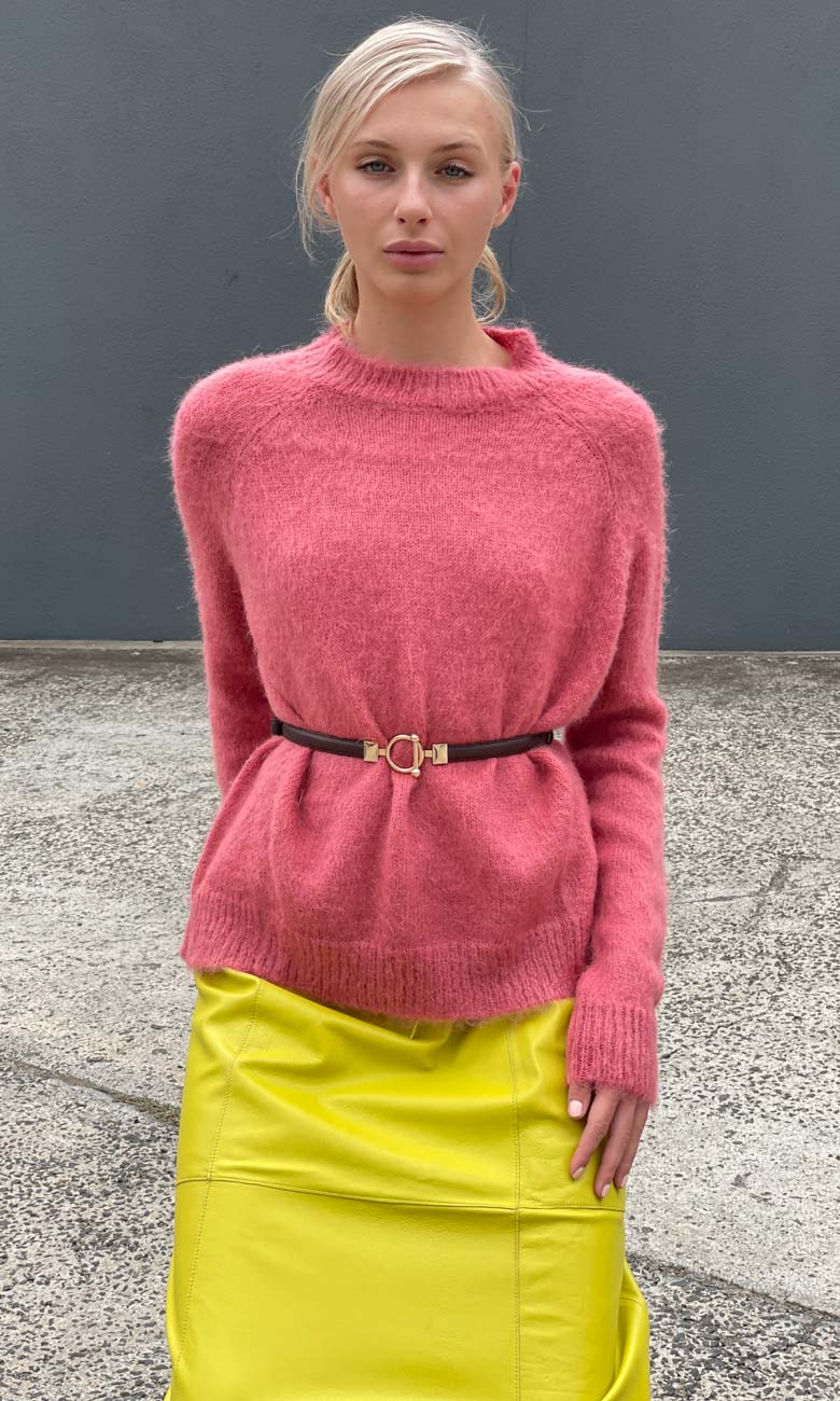 Gorgeous slim leather belt with gold clasp at front.