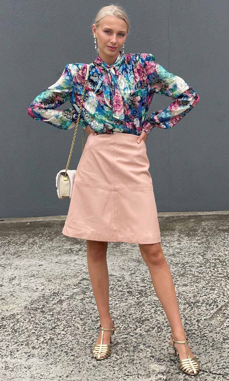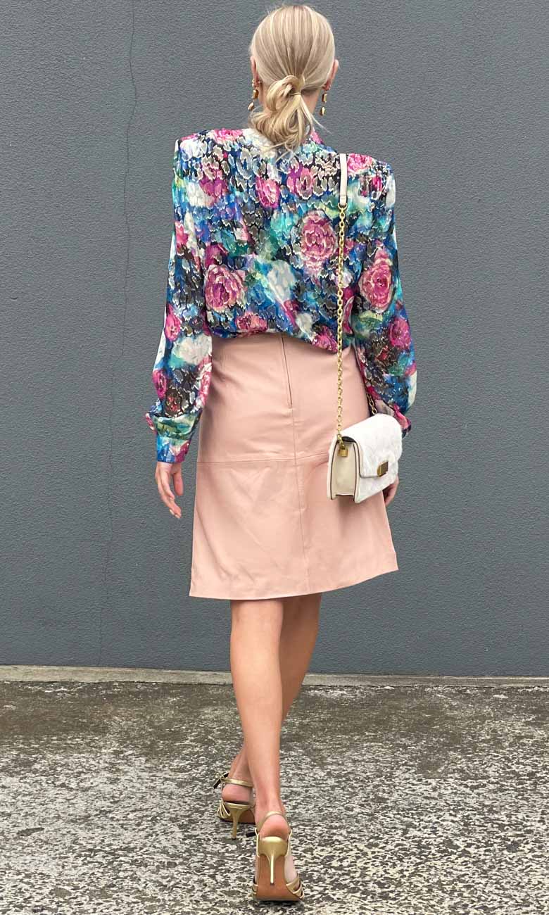 Beautiful soft Dusty Pink leather subtle A line skirt