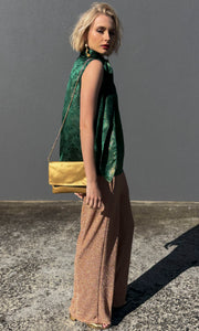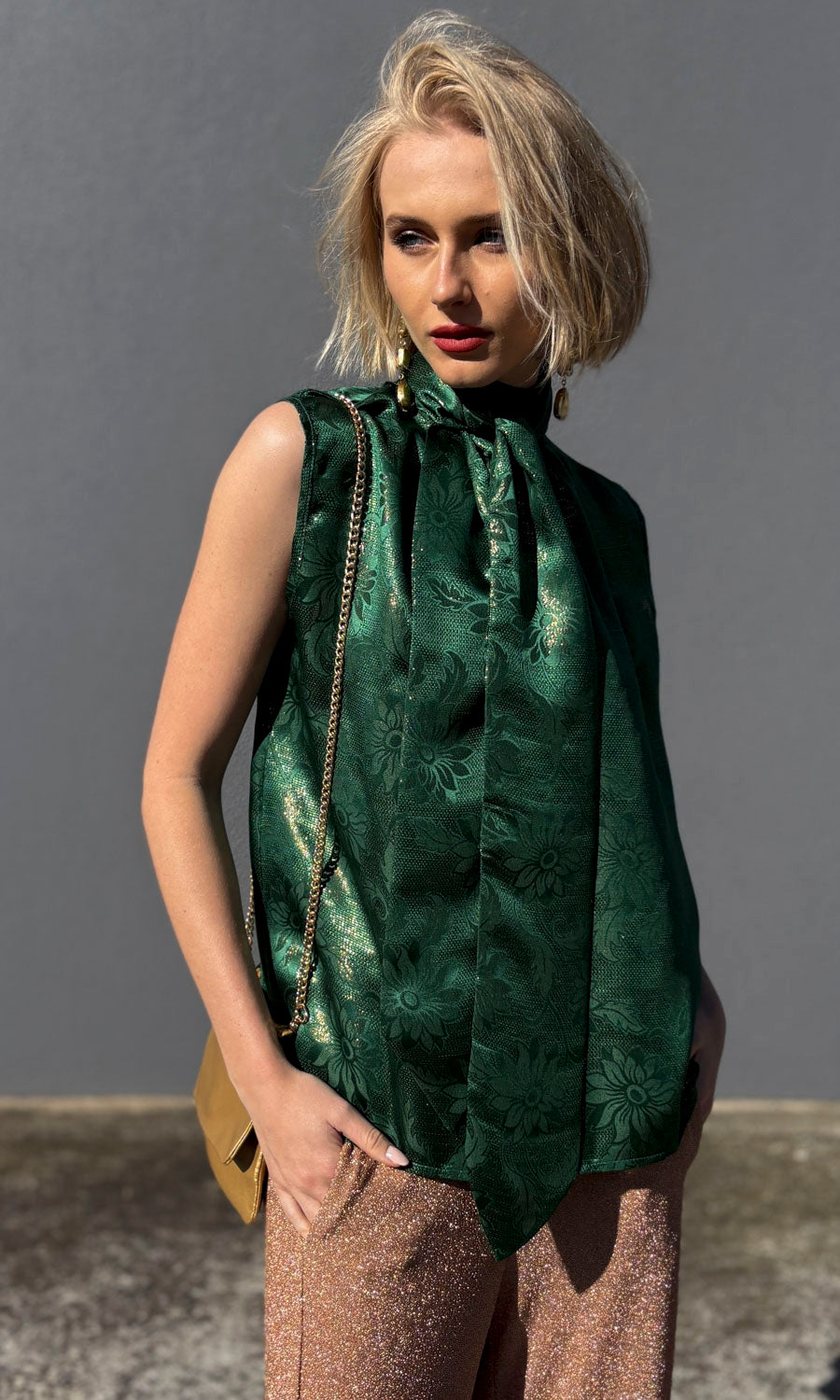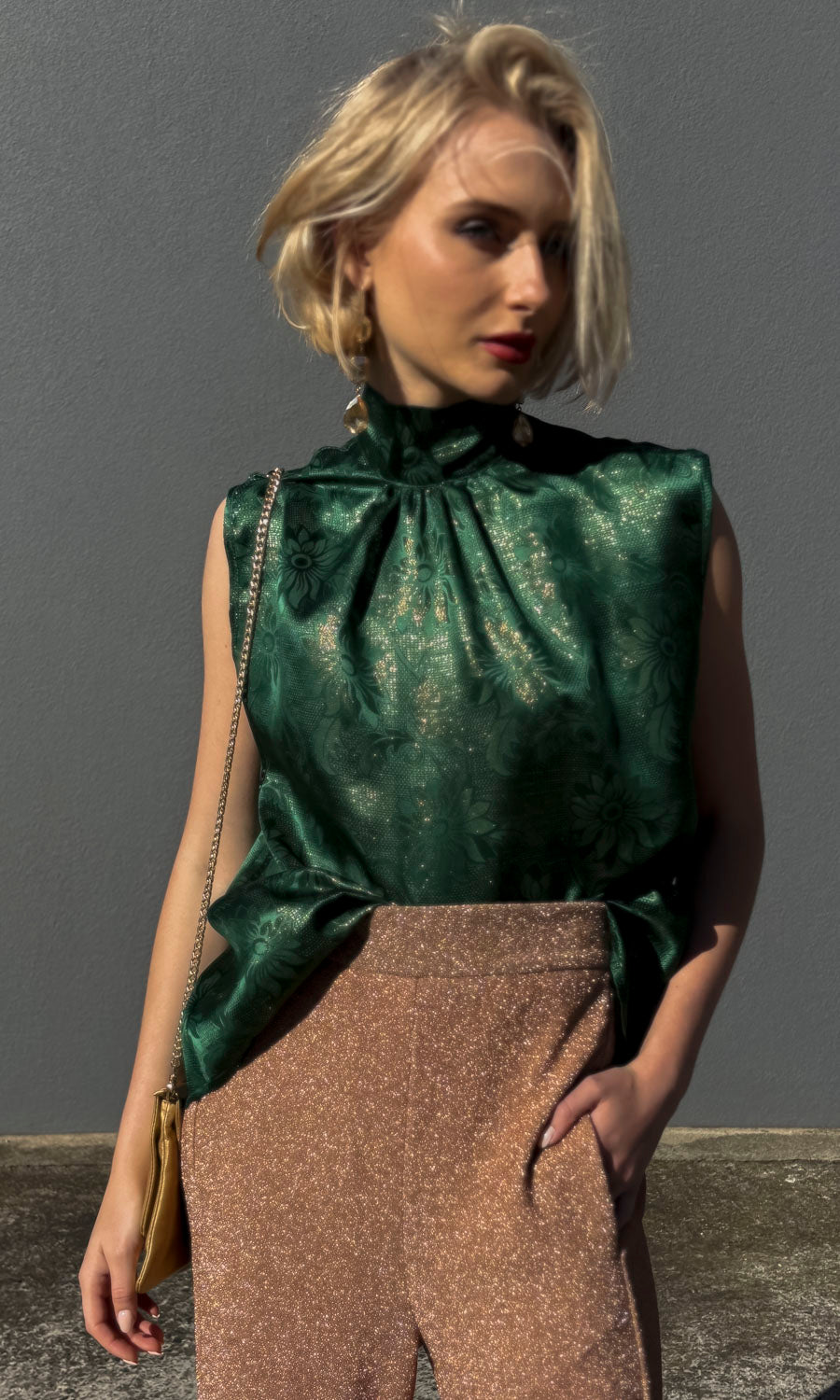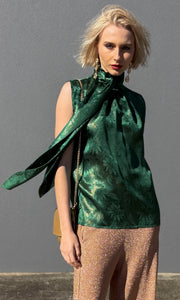 Gorgeous elegant top made with 100% Rich Emerald silk texture with slight gold lurex thread.