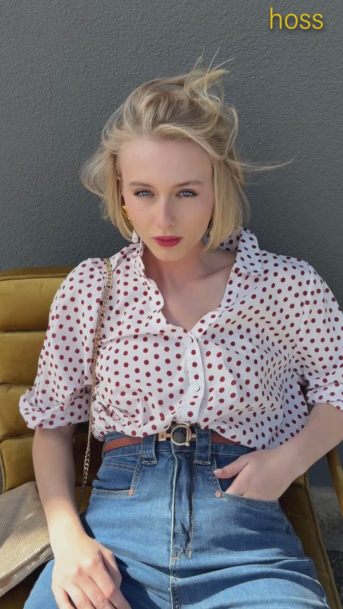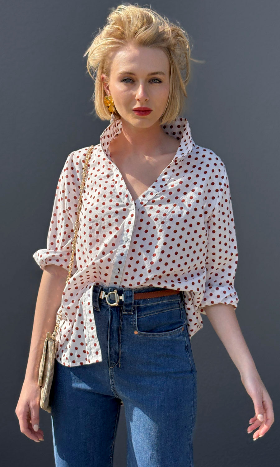 hoss Rebecca Polka Dot Shirt - Rust Red Polka Dot