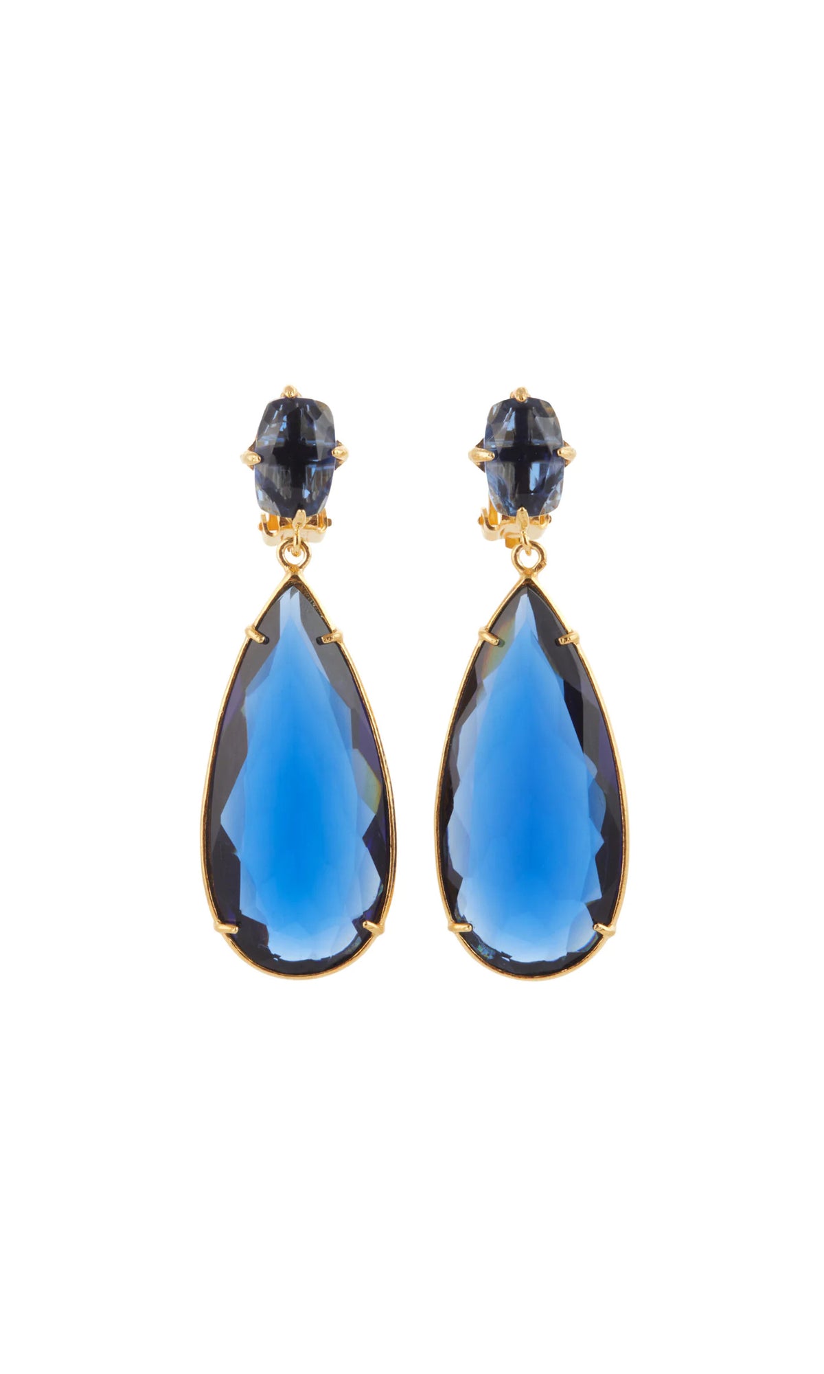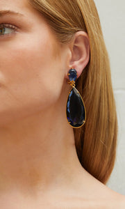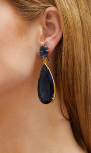 The handcrafted Franca Earrings in Dark Blue are adorned with dark blue-hued crystals.