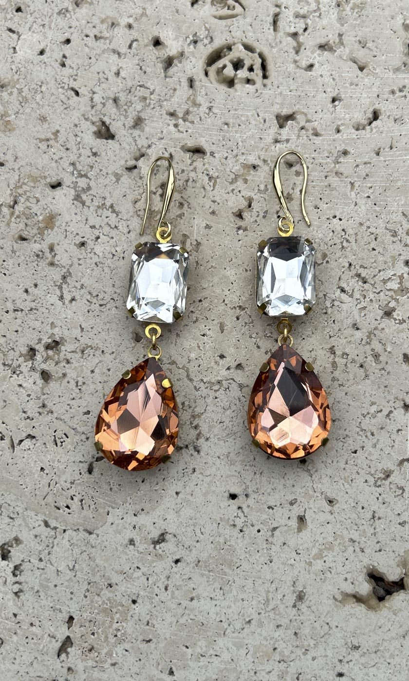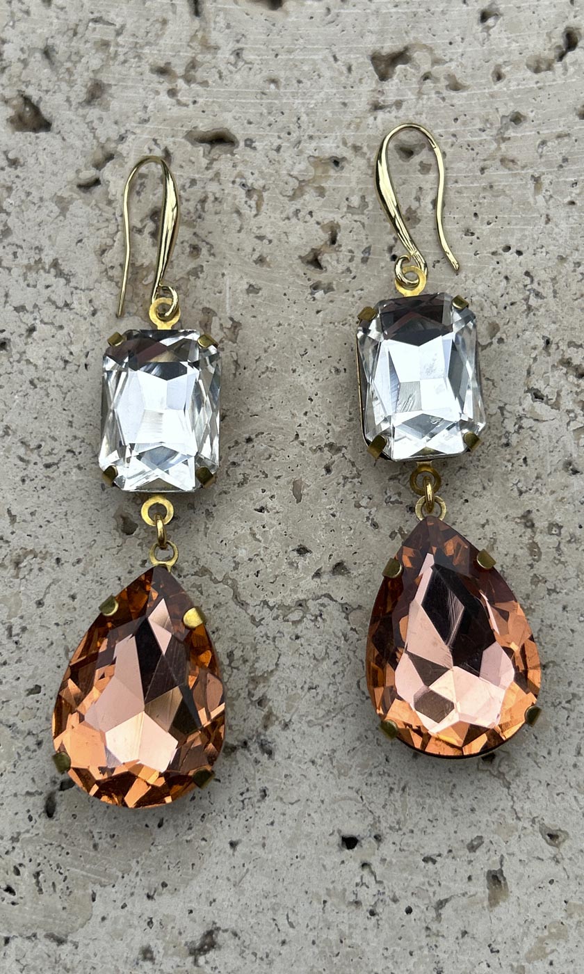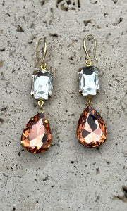 Clear smaller crystal then larger Amber Polygon drop earrings