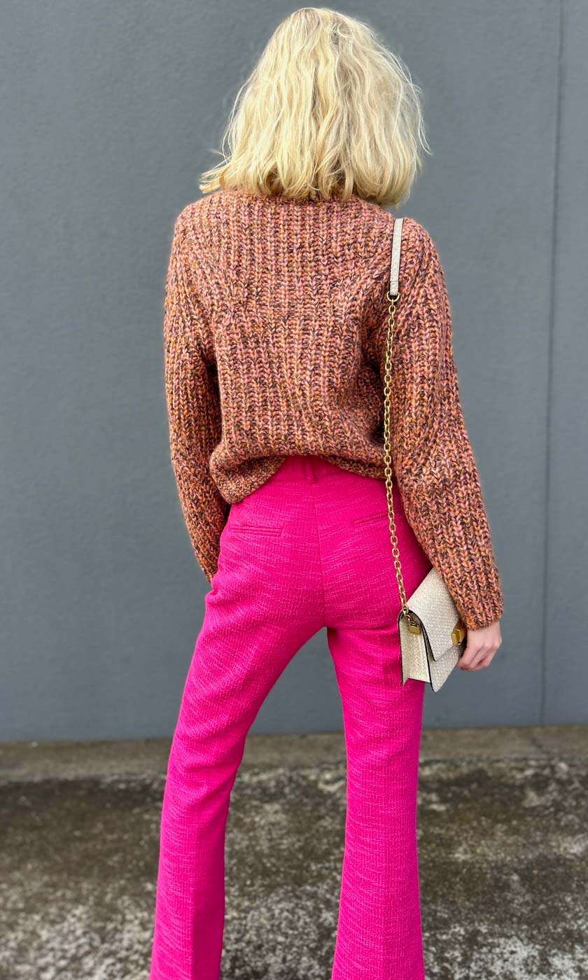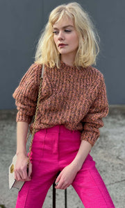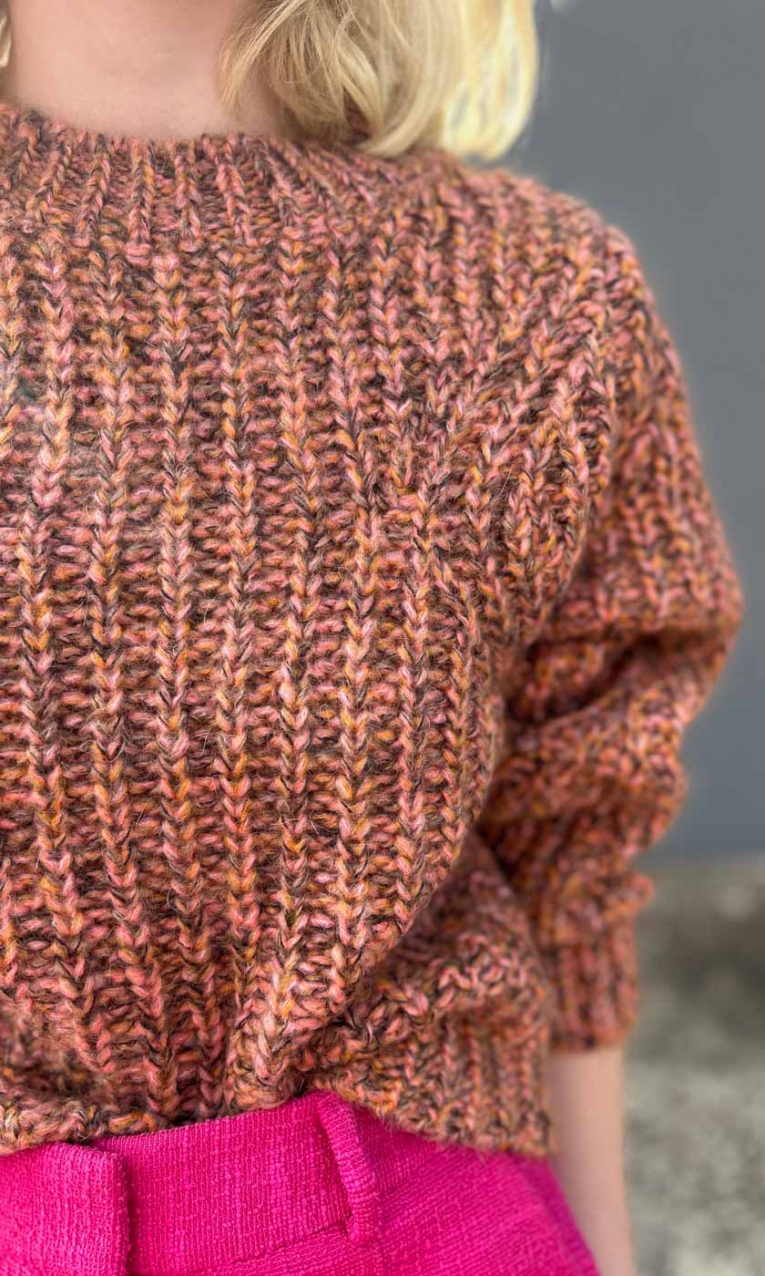 Second Female chunky pullover. Made in a thick and chunky mohair-blend melange knit. Featuring a ribbed neck, dropped shoulders and structural knitted pattern details. Relaxed, comfy fit.