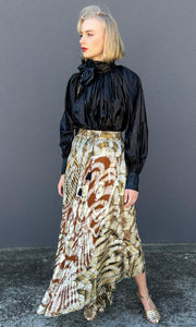 A beautiful elegant long skirt by Mes Dem with unstructured hemline .