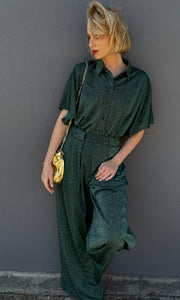 Wide leg style relaxed fit Aspen trouser made with knitted lurex viscose.