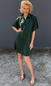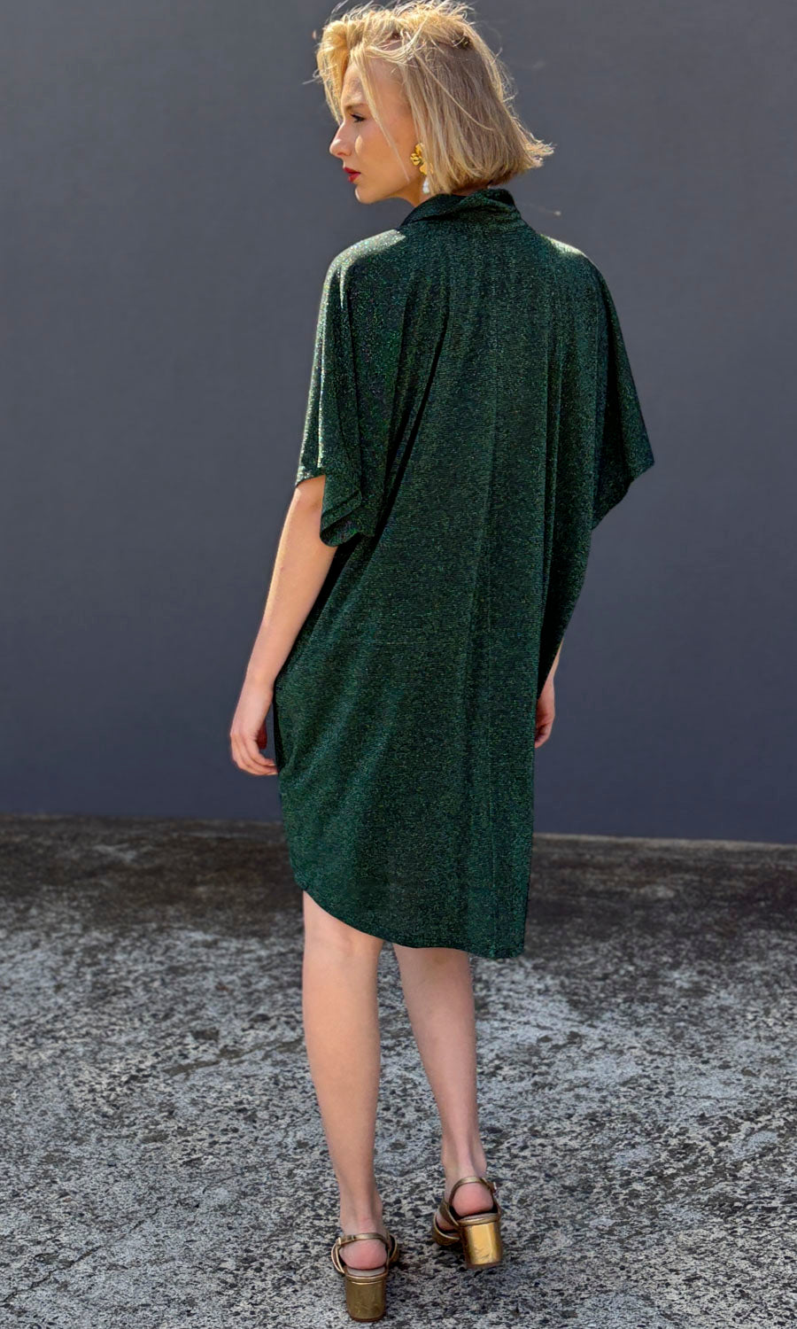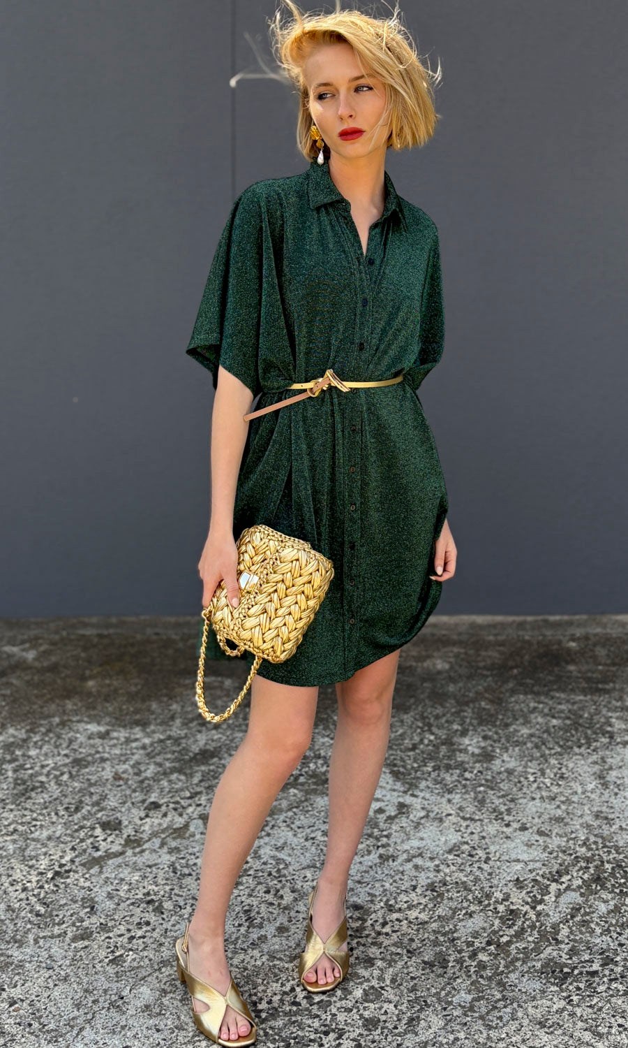 Momoni Asadeo Lurex Shirt Dress - Emerald
