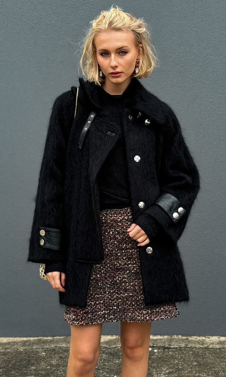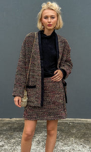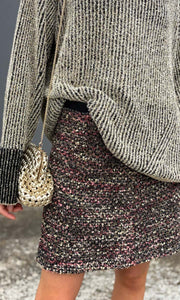 Mini skirt in sparkling tweed with lurex accents.