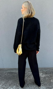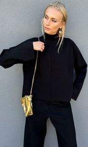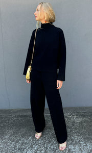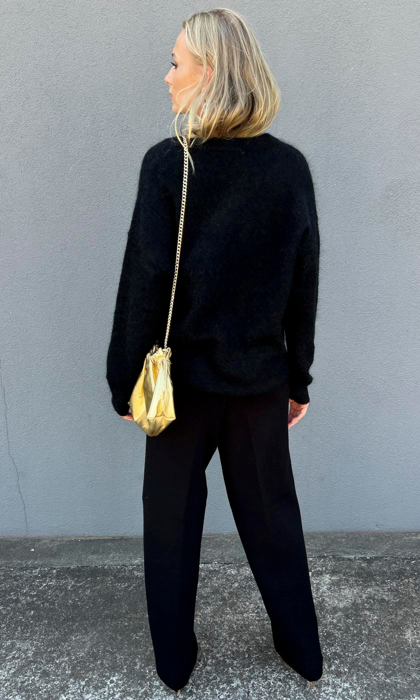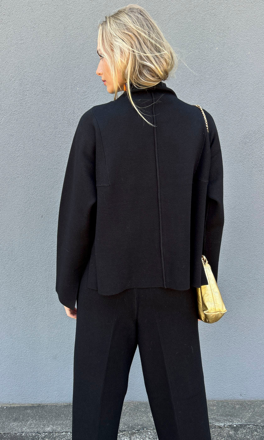A smooth Black  knit with splits on the cuffs and sides to create a kimono-style silhouette.