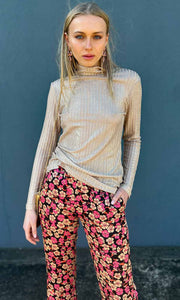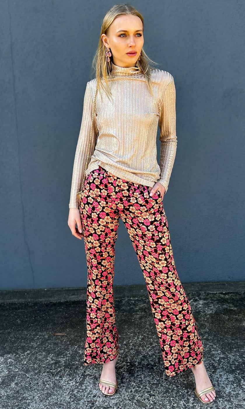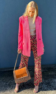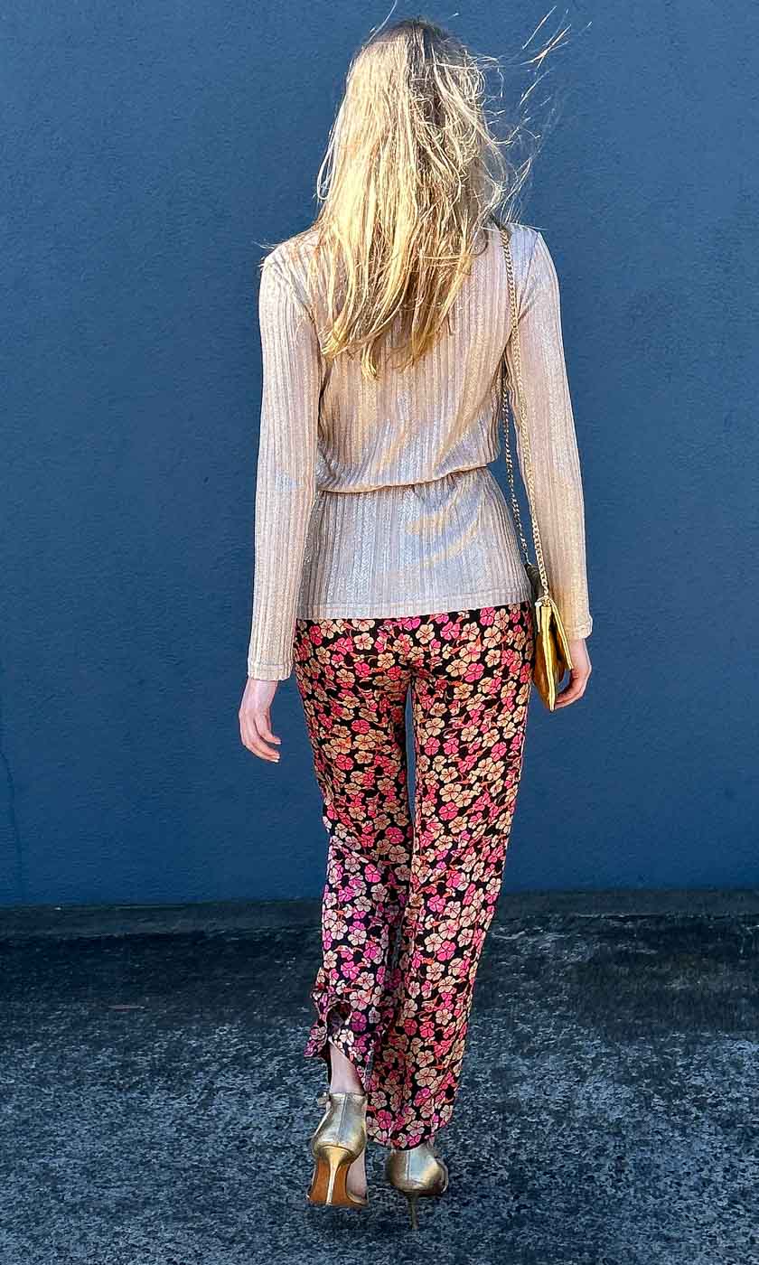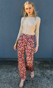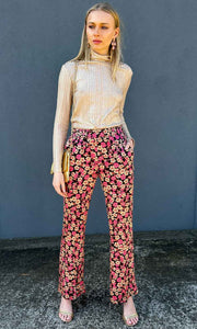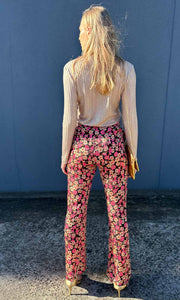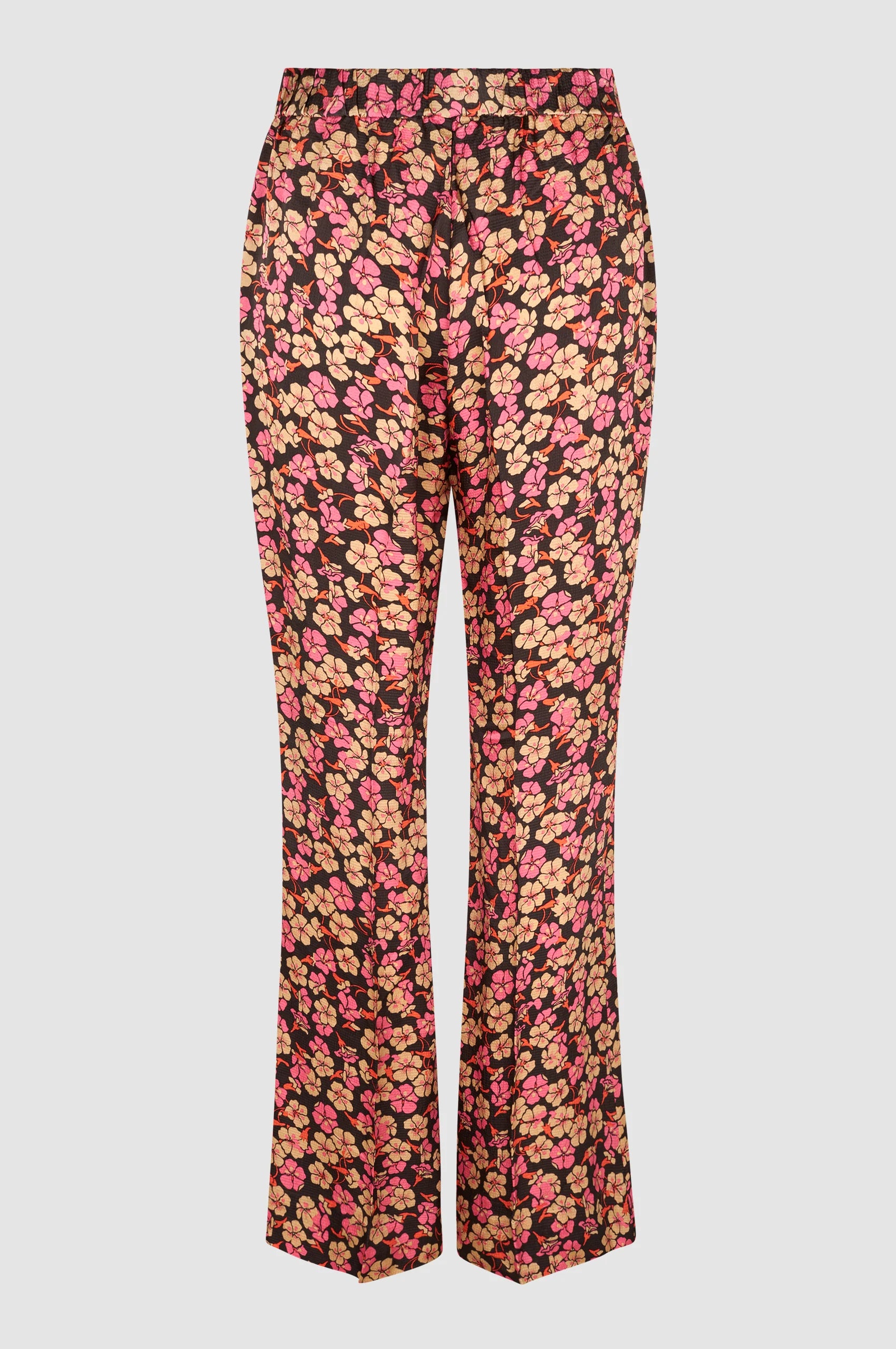 Second Female floral trousers. Made in soft and silky viscose with a floral pattern. Featuring an elasticated waistband. Two inseam pockets at the sides and decorative welt pockets at the back. Mid waist with relaxed leg.