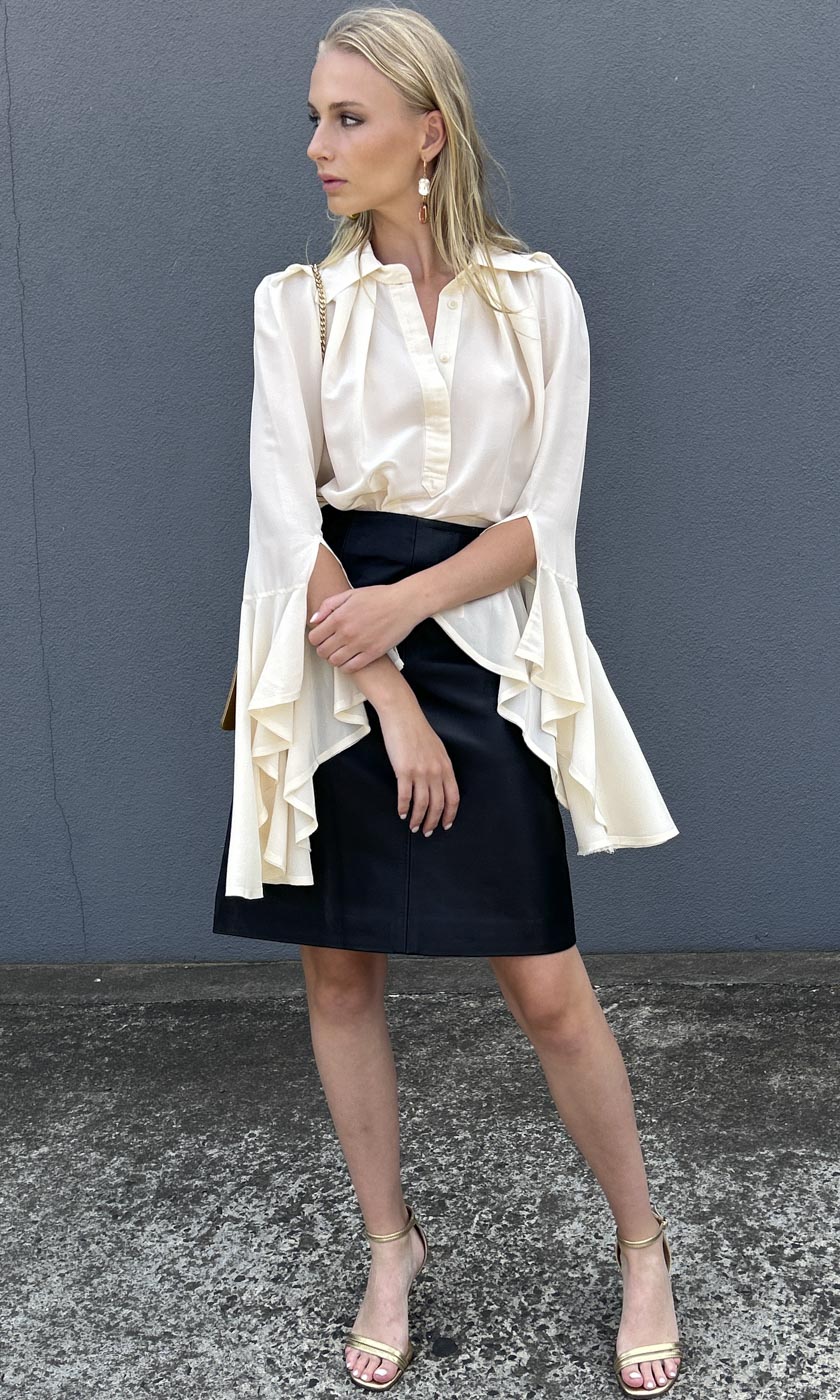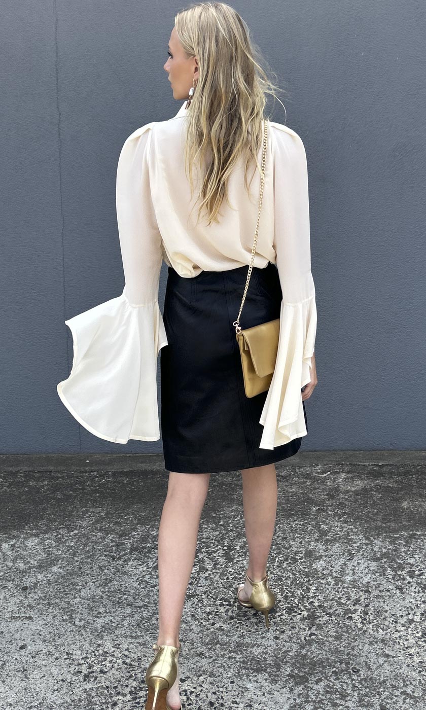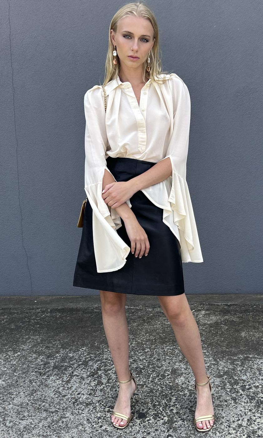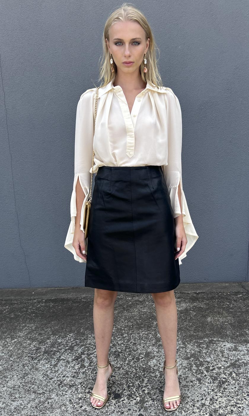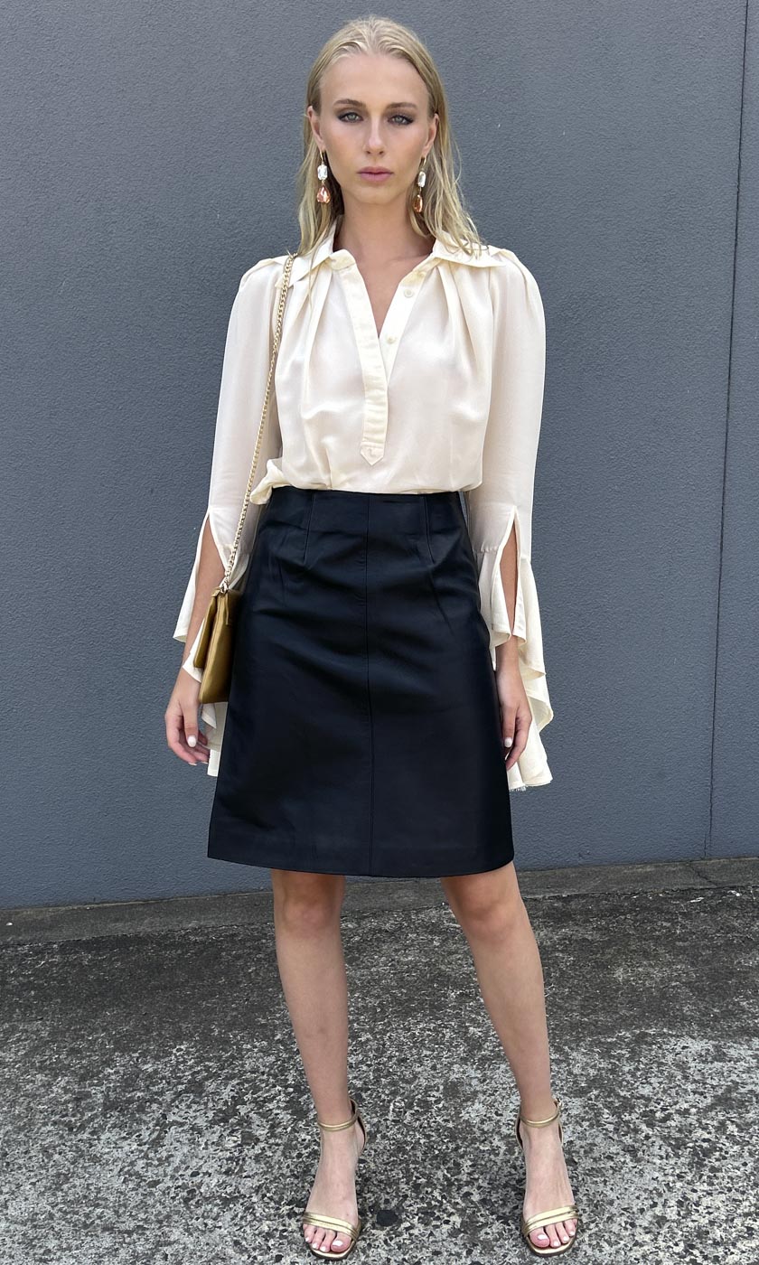 100% leather skirt in a lovely soft black leather. ALSO AVAILABLE IN MILK