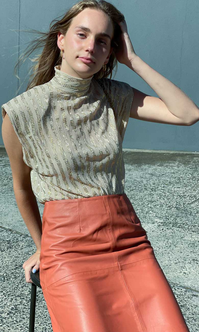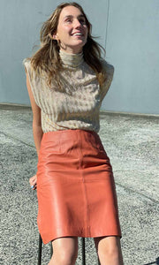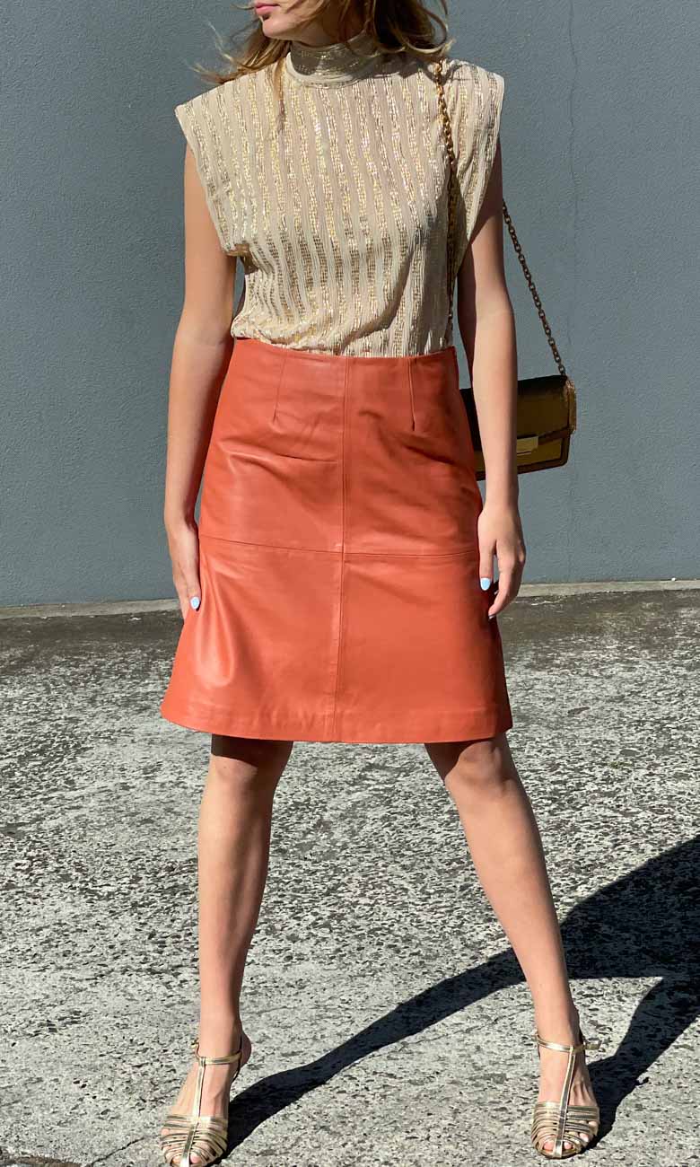 Hoss Michelle Burnt Orange Leather Skirt