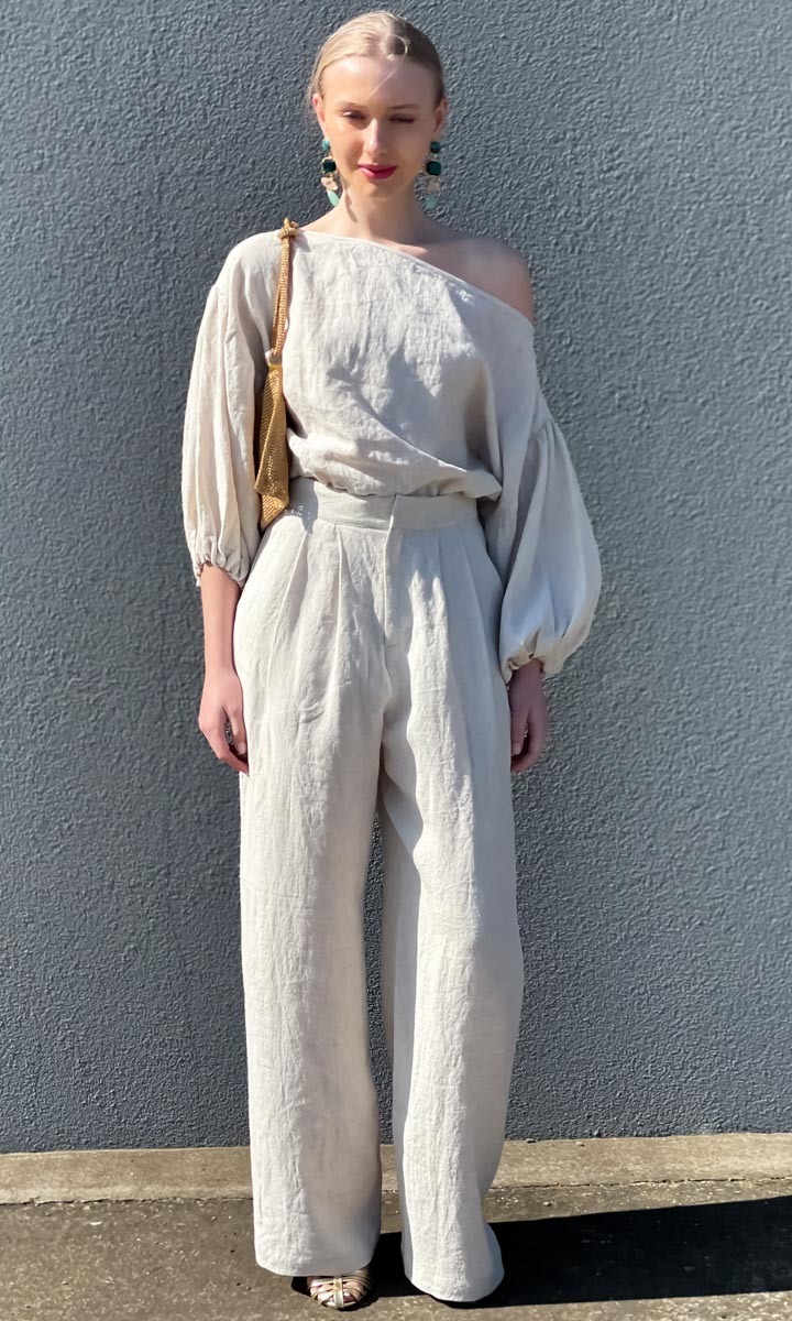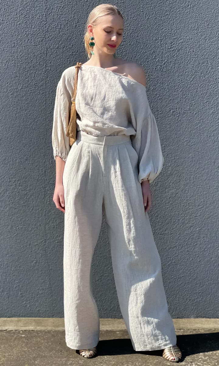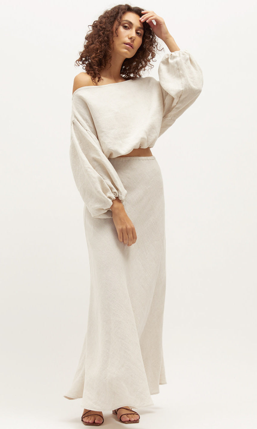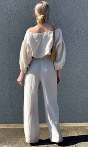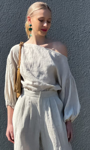 Easy wearing semi Crop Blouse with billowy 3/4 sleeves. Sits at the edge of the shoulders, can be pulled further down to sit off shoulders due to elastic in back.