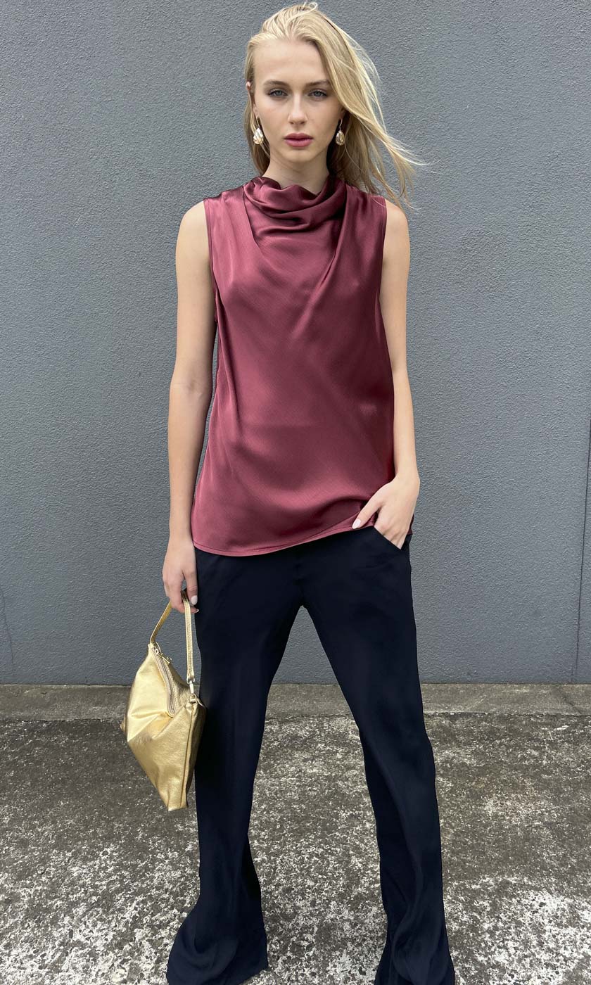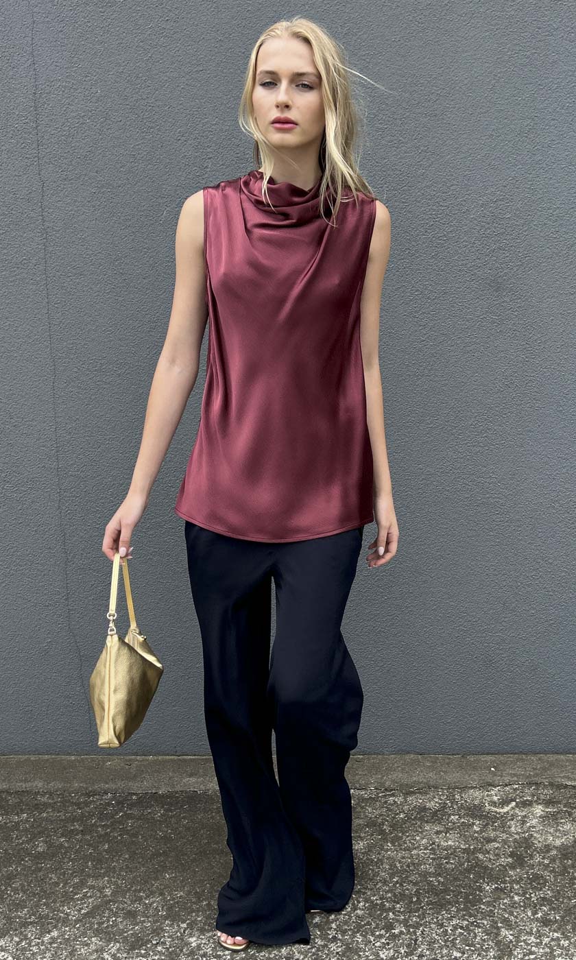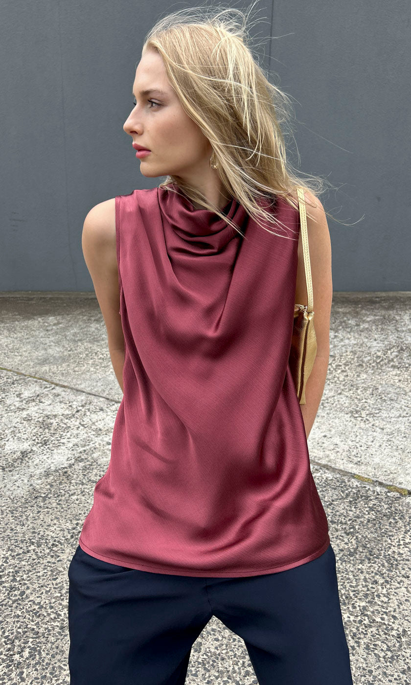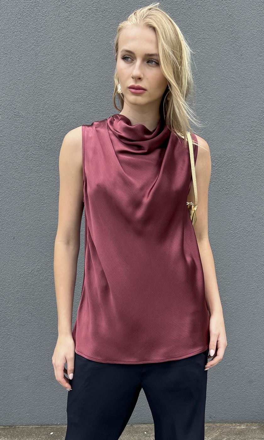 Hoss Solange Cowl Neck Top - Merlot