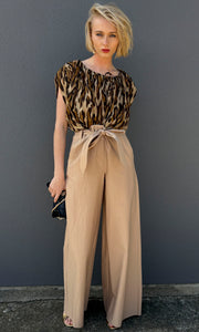 Marella Italy wide leg cotton trouser with self tie belt.