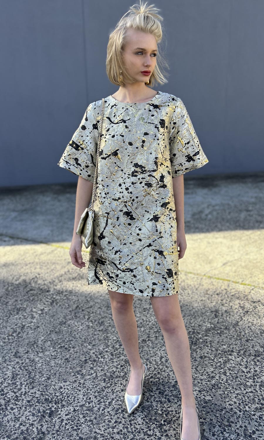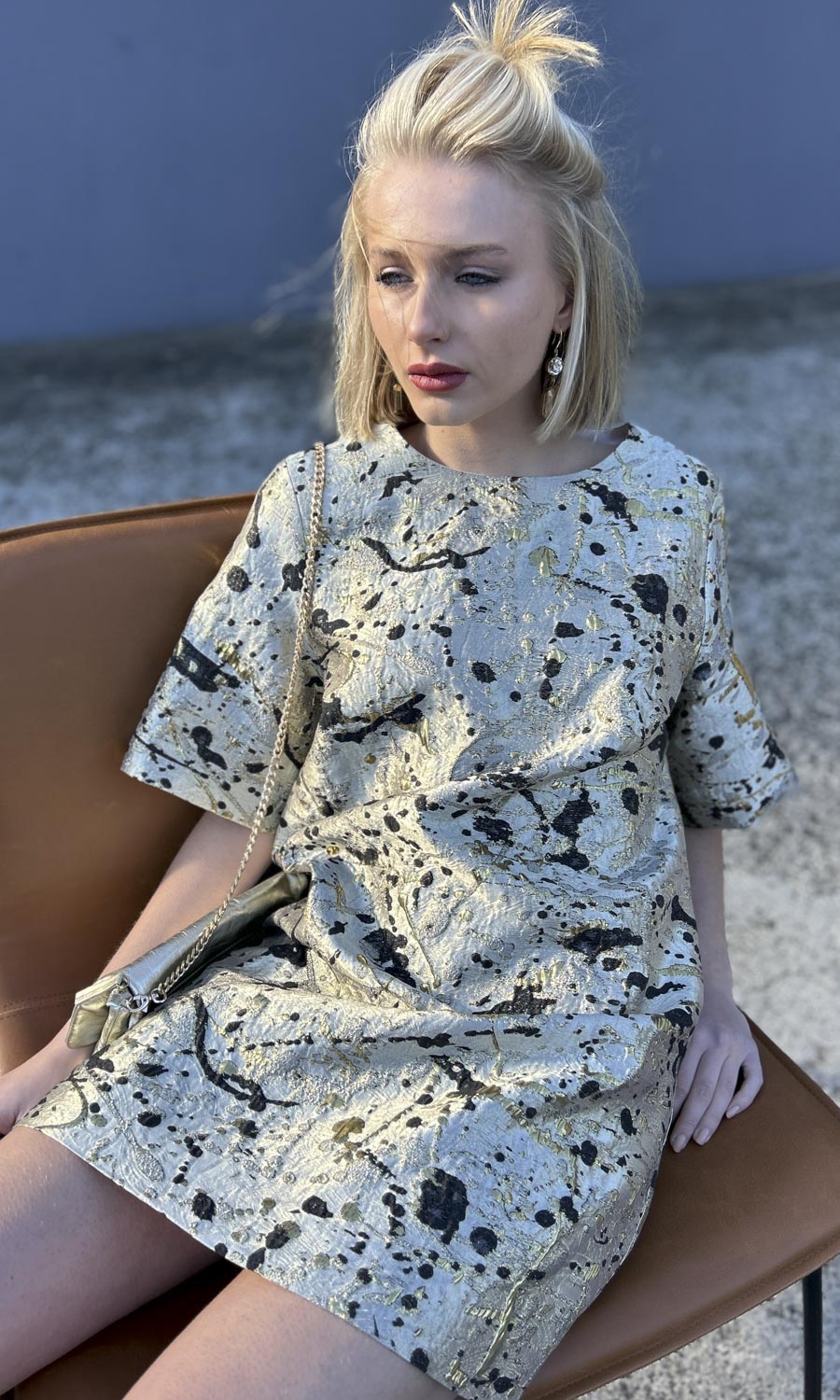 hoss Phillipa Dramatic Gold/Black Shift Dress