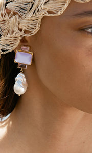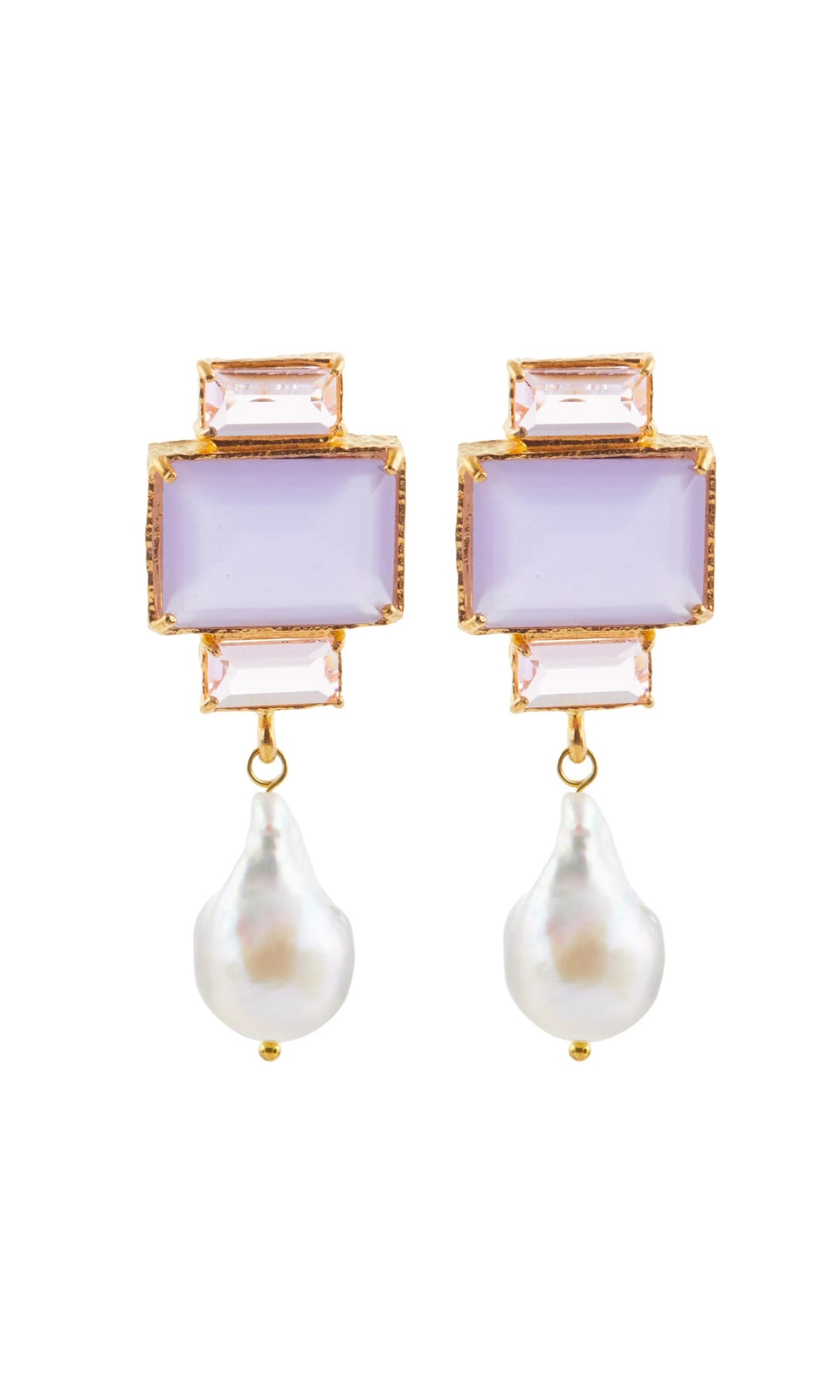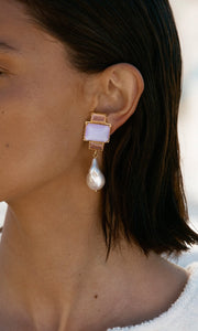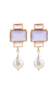 The handcrafted Bambina Earrings in Lilac are adorned with shaded hues of Lilac crystals, accented by lustrous, freshwater Baroque Pearls.