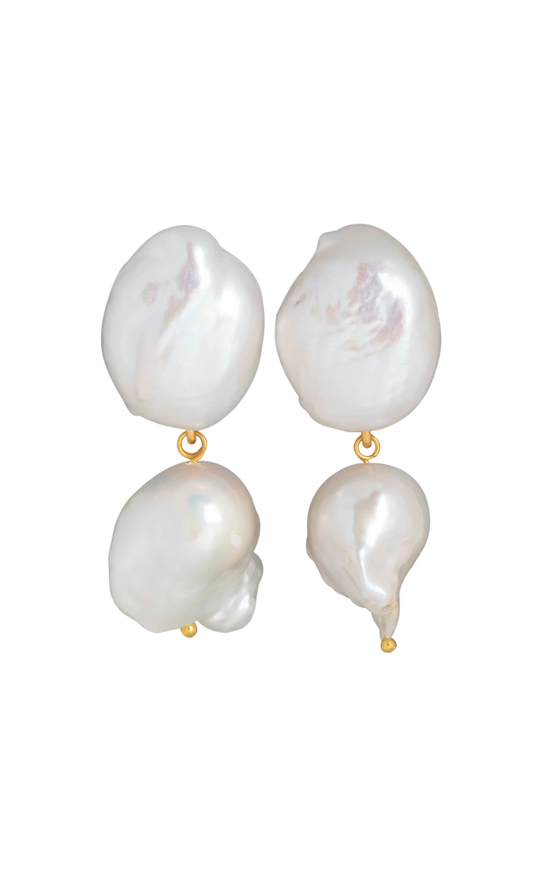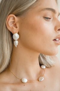 The handcrafted Thalia Earrings in Gold are adorned with lustrous, freshwater pearls.