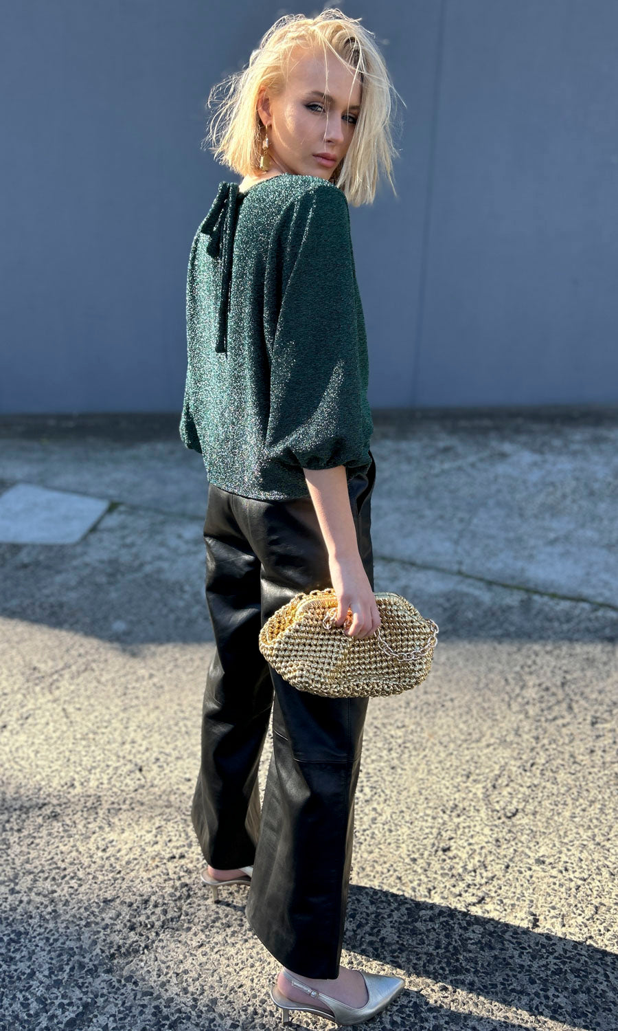 hoss Emerald Green Glam Tie back Top