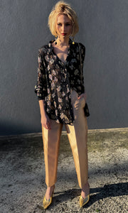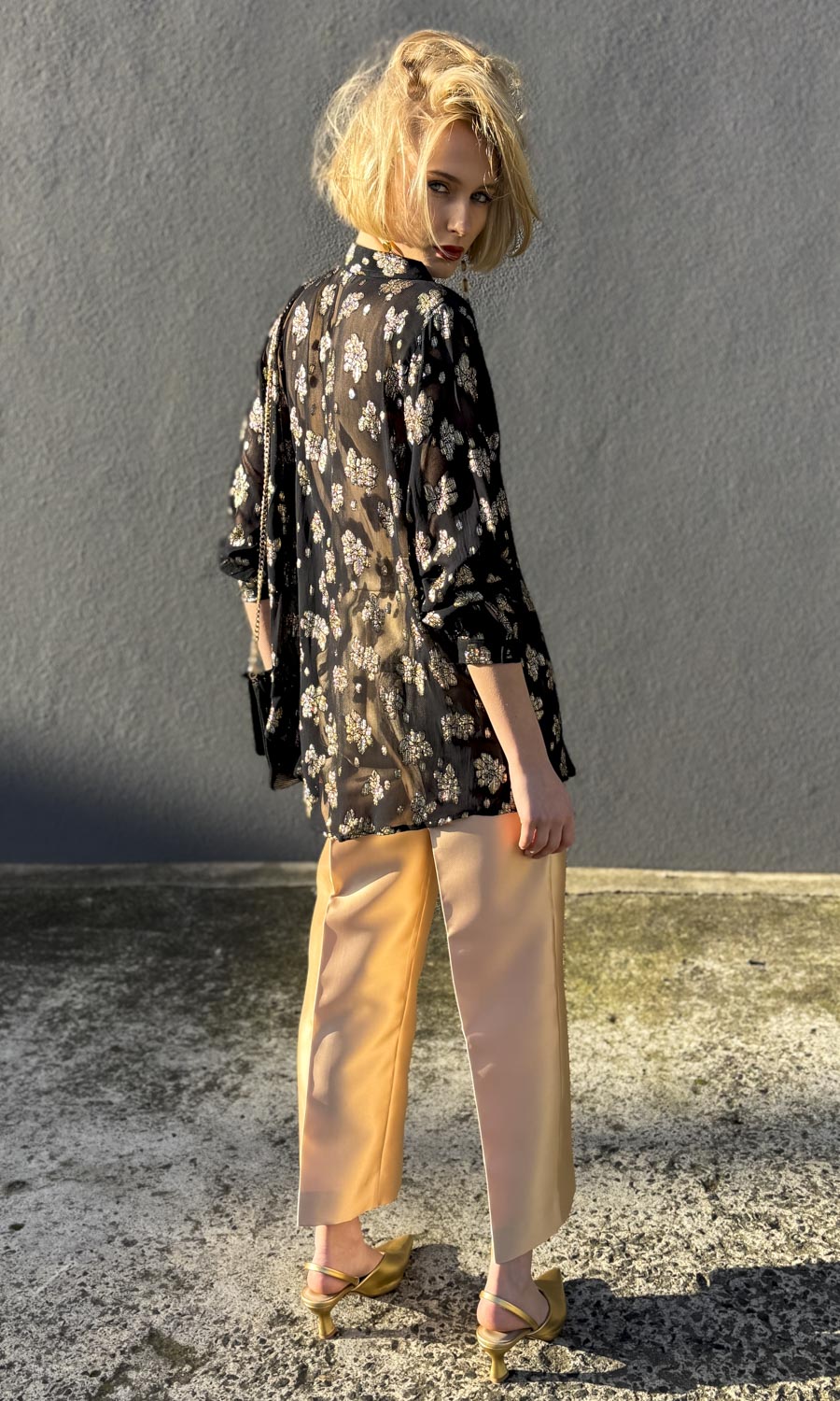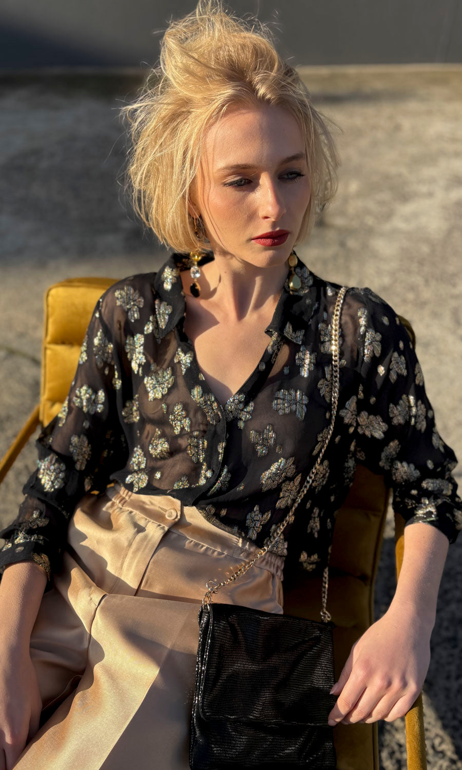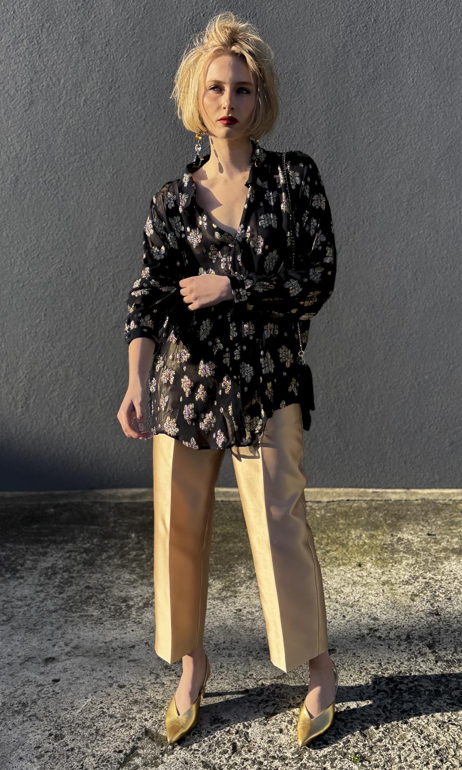 Hoss Rebecca Gold Leaf on Black Shirt