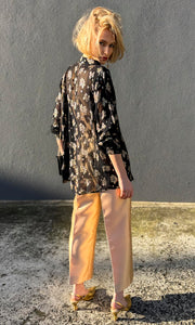 Viscose black base with Large gold leaf embroid .