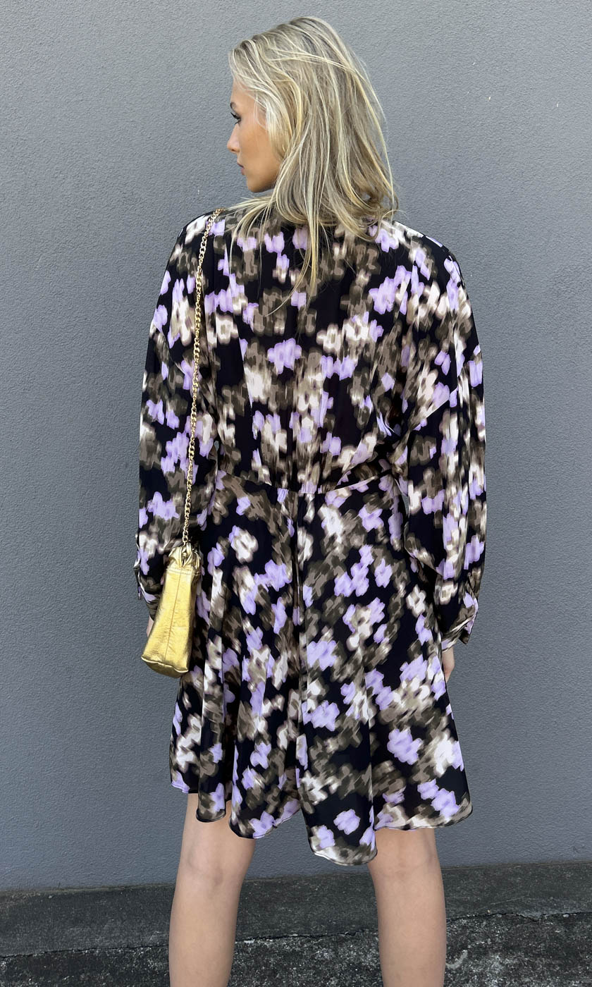 Dropped shoulders with wide sleeves and buttoned cuffs.
