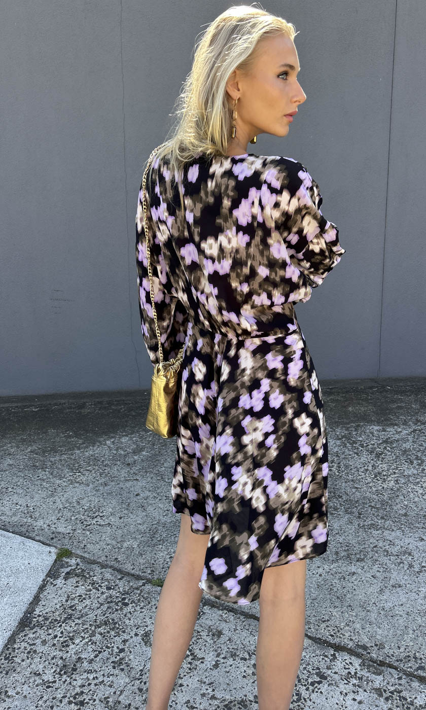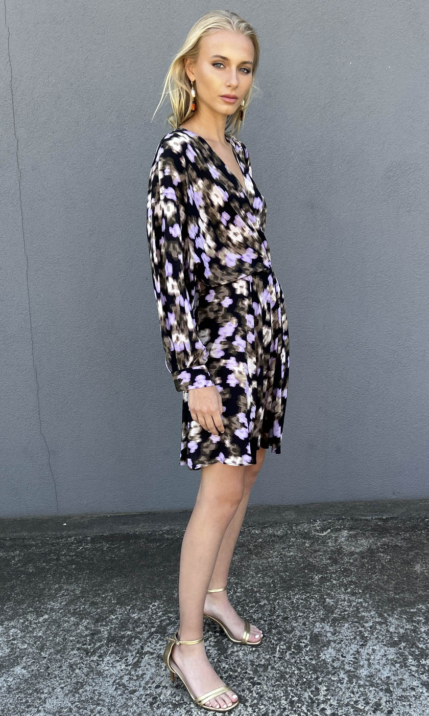 Featuring a crossover neckline that creates a flattering V shape and side zip closure.